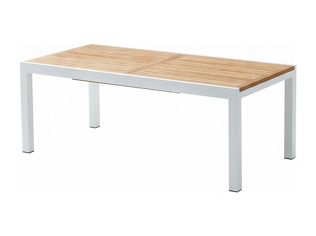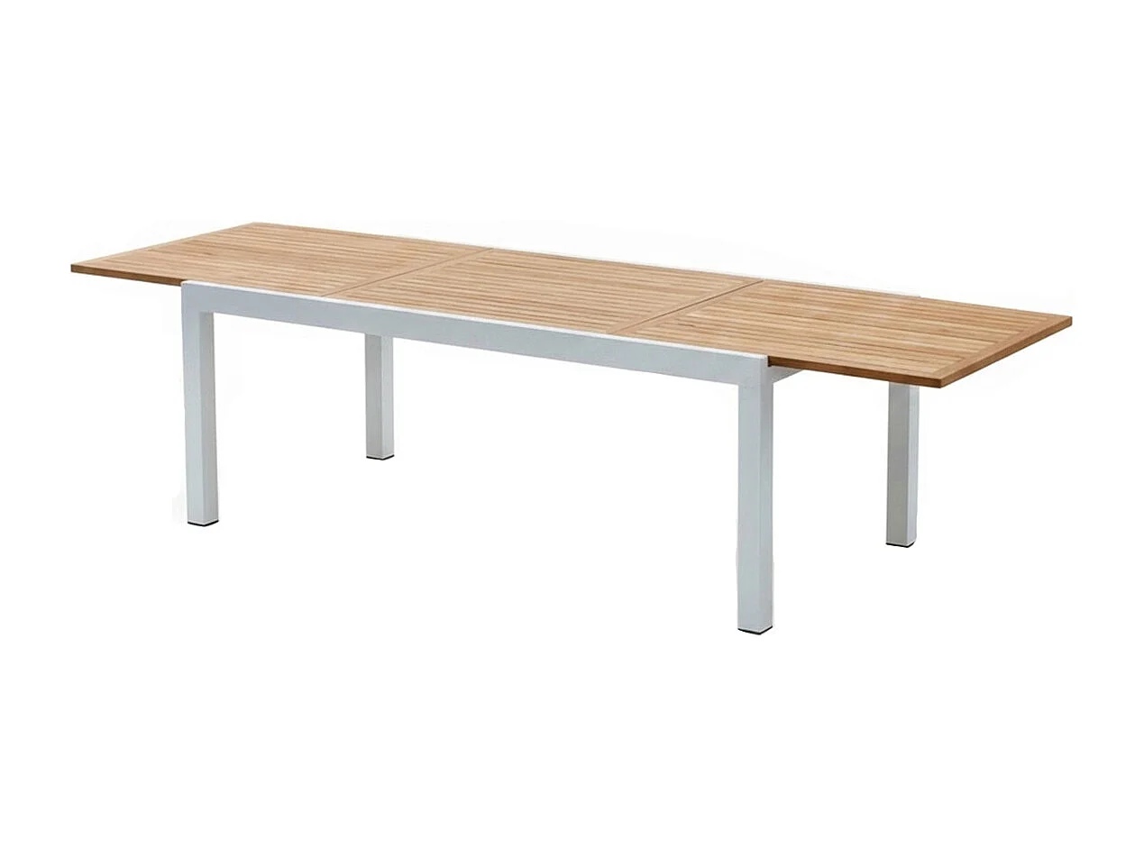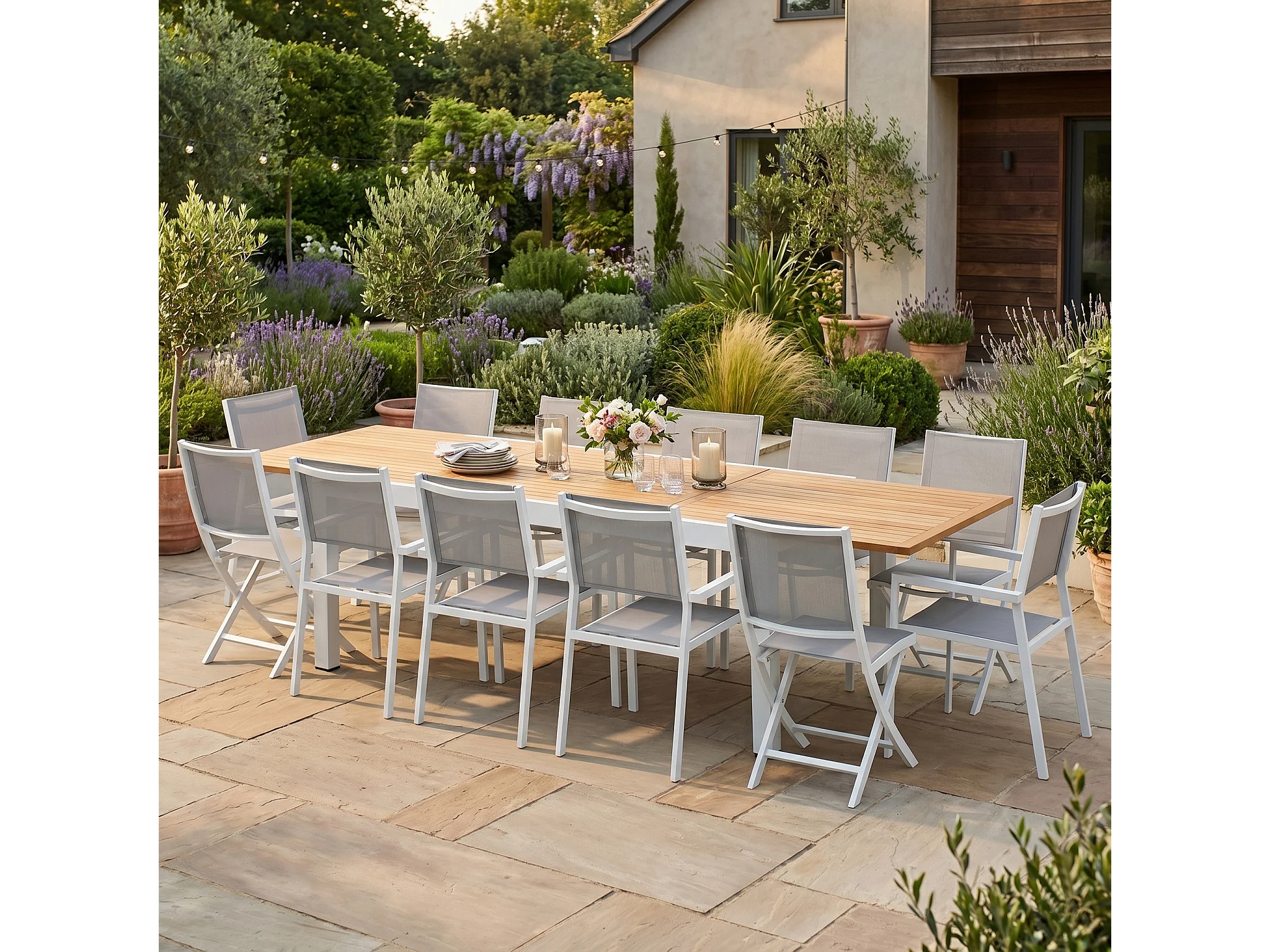 Table BALIteck 8/12 personnes structure aluminium blanche, plateau en lame de Teck