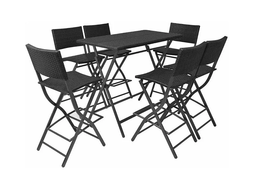 Table bar rectangulaire et 6 chaises de jardin résine tressée noir Klark