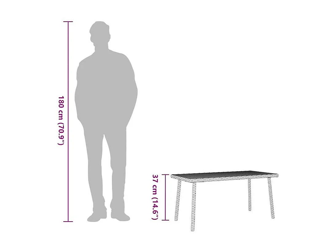 Table base de jardin rectangulaire gris 80x40x37 rotin