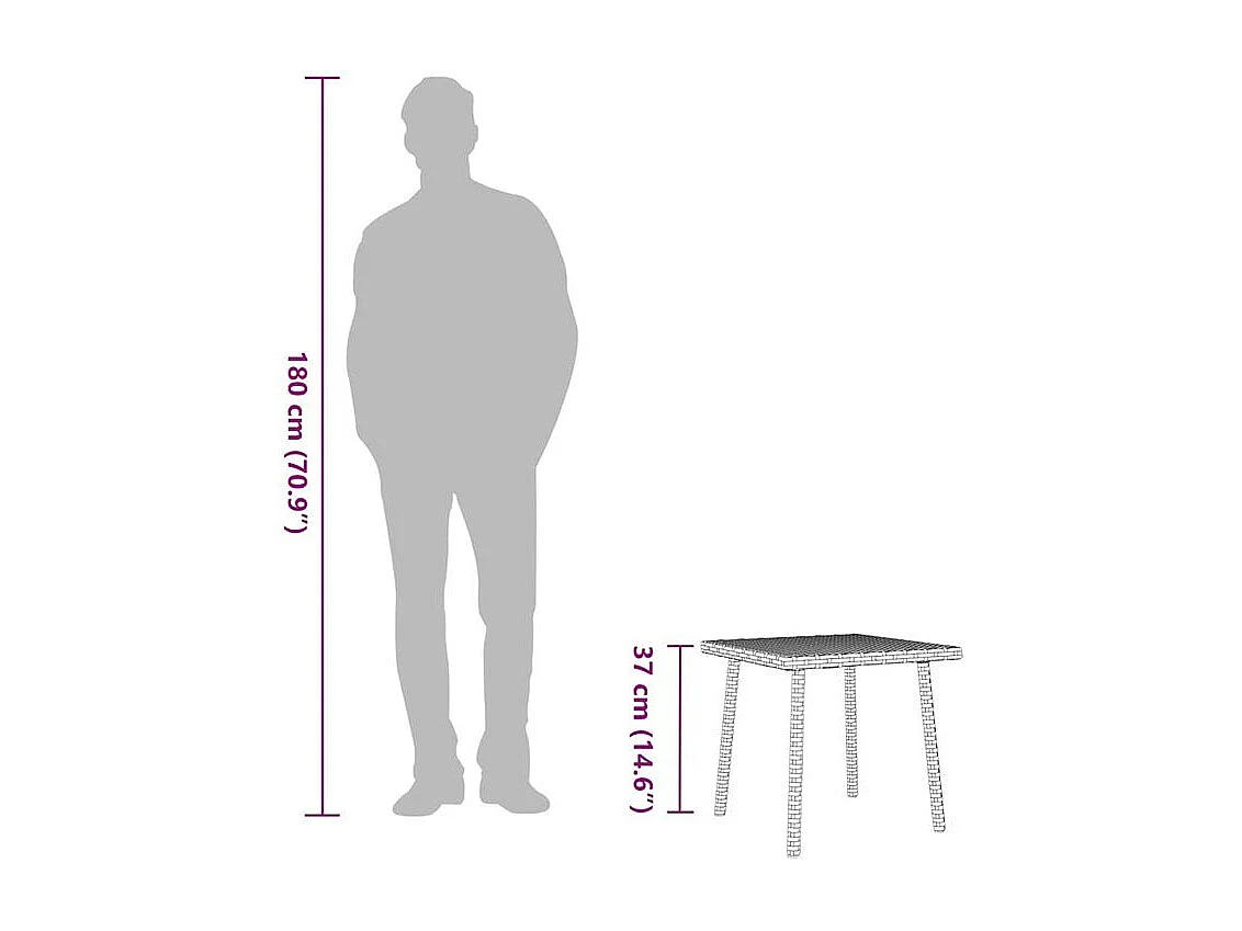 Table base de jardin rectangulaire marron 40x40x37 rotin
