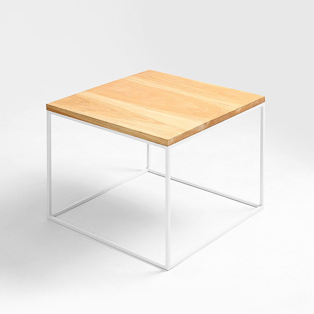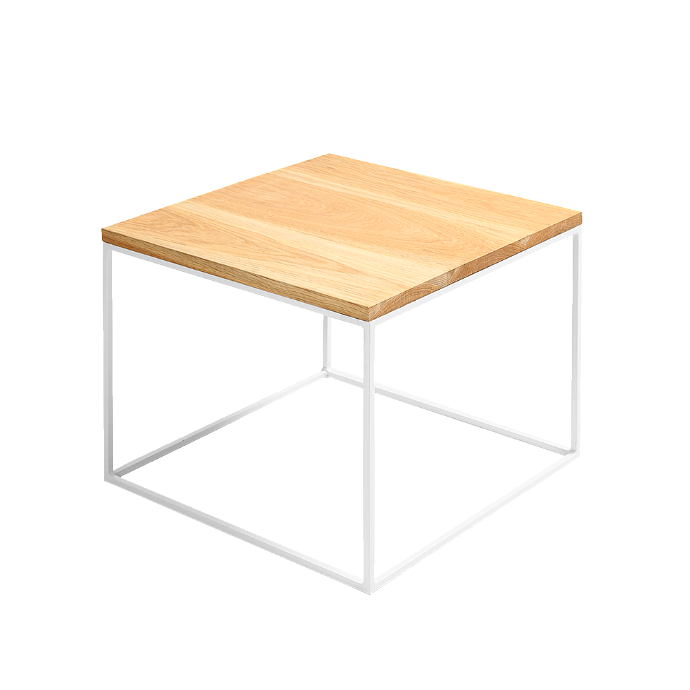 Table basse 0,5x0,5x0,45 m, placage chêne blanc, bois tensio, modèle 50