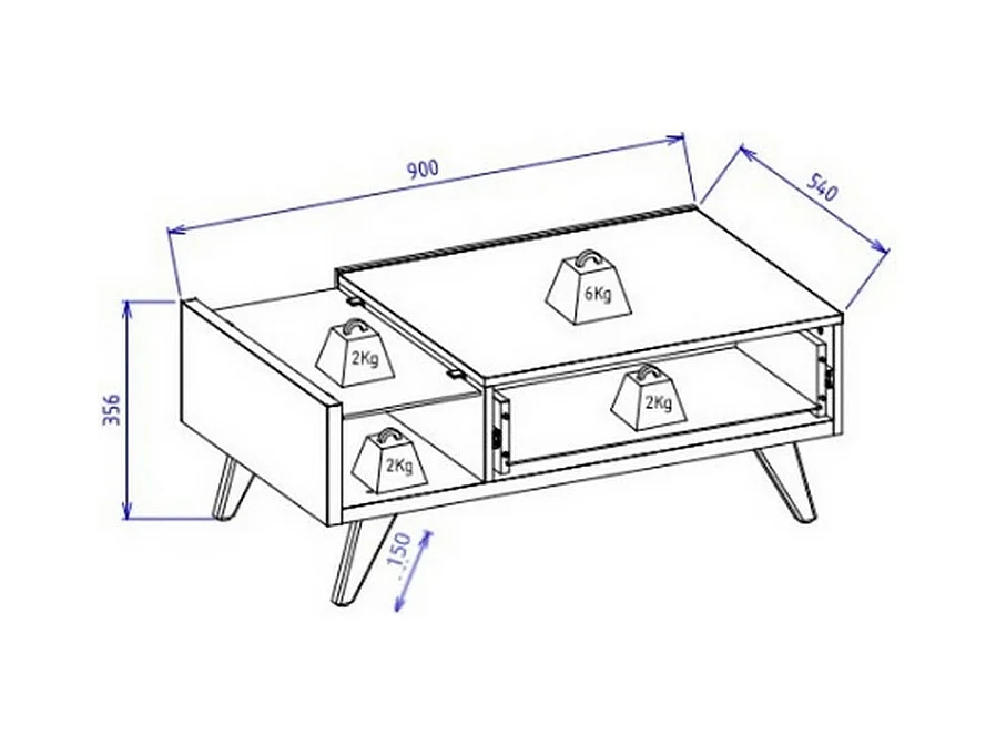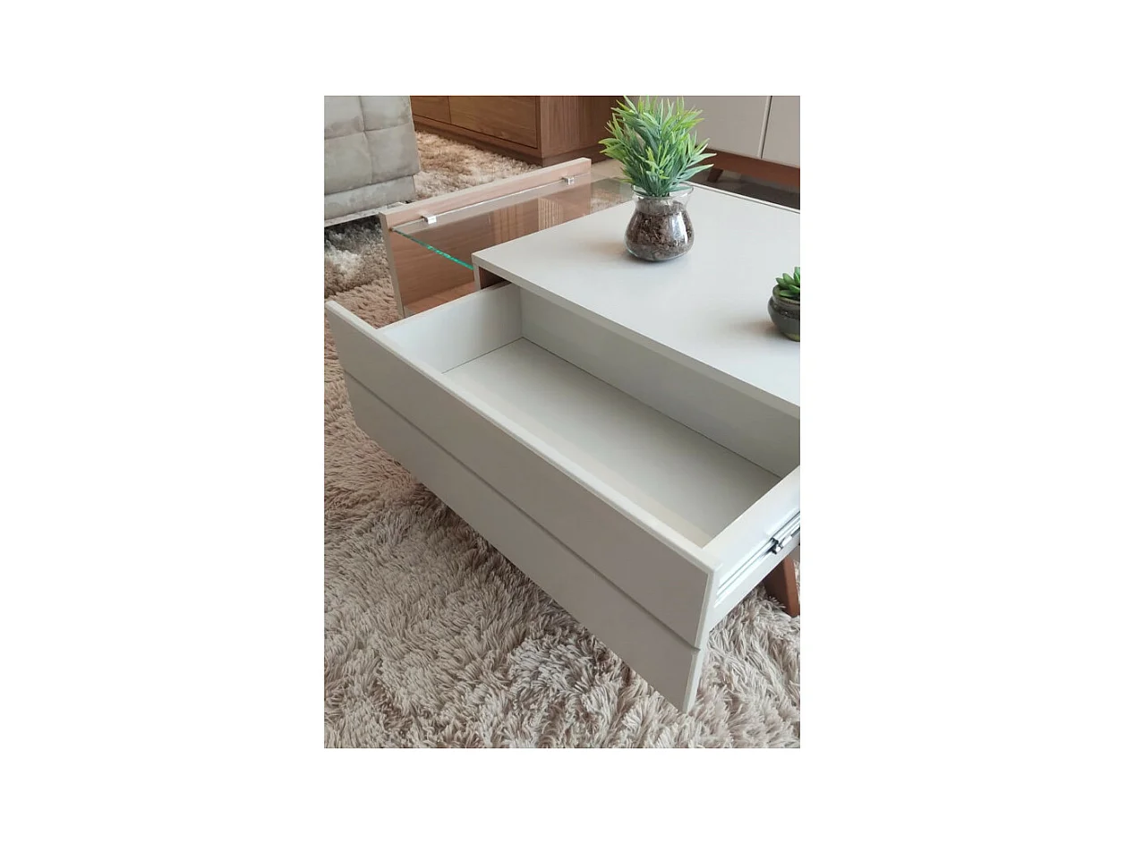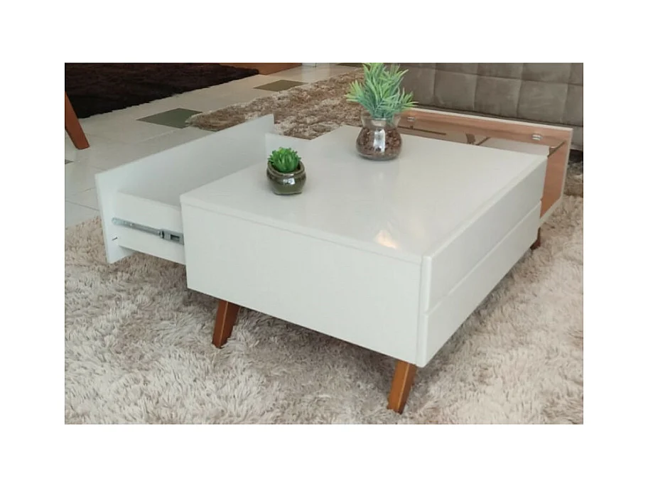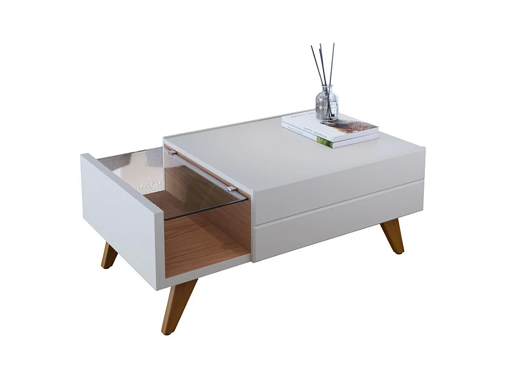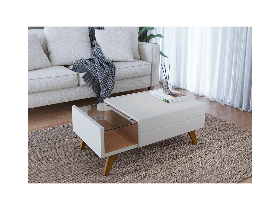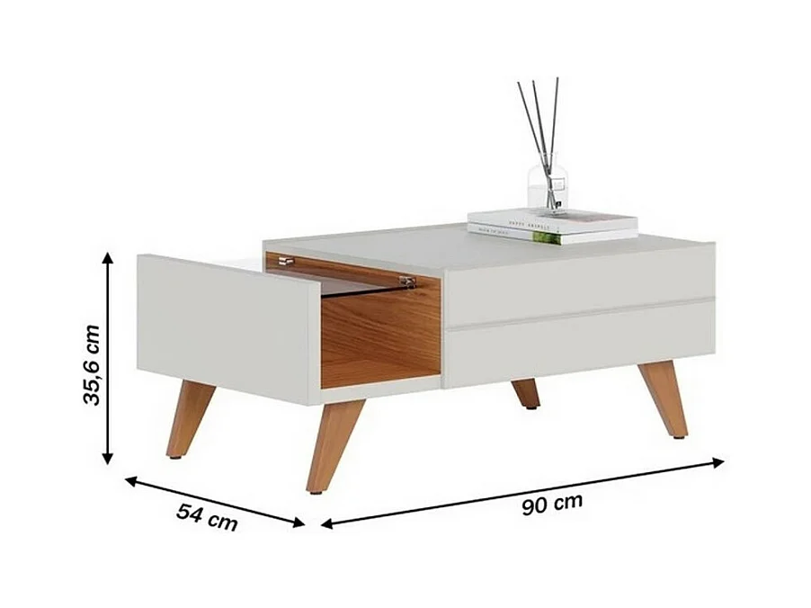Table Basse 1 Tiroir 1 Niche 4 Pieds Bois Blanche et Chêne L 90 H 35.6 P 54 cm
