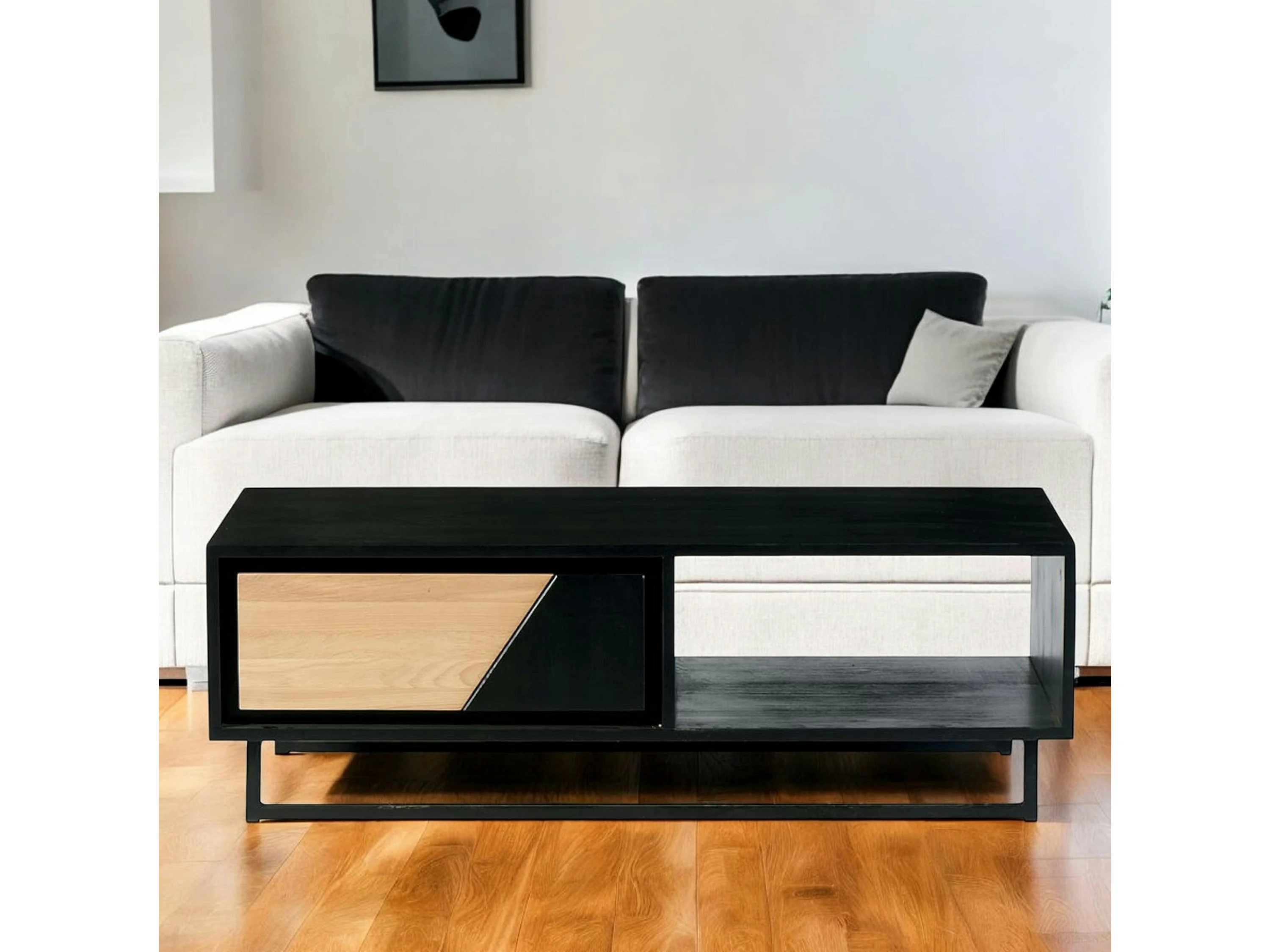 Table basse 1 tiroir 1 niche bois noir et blanc ANINA