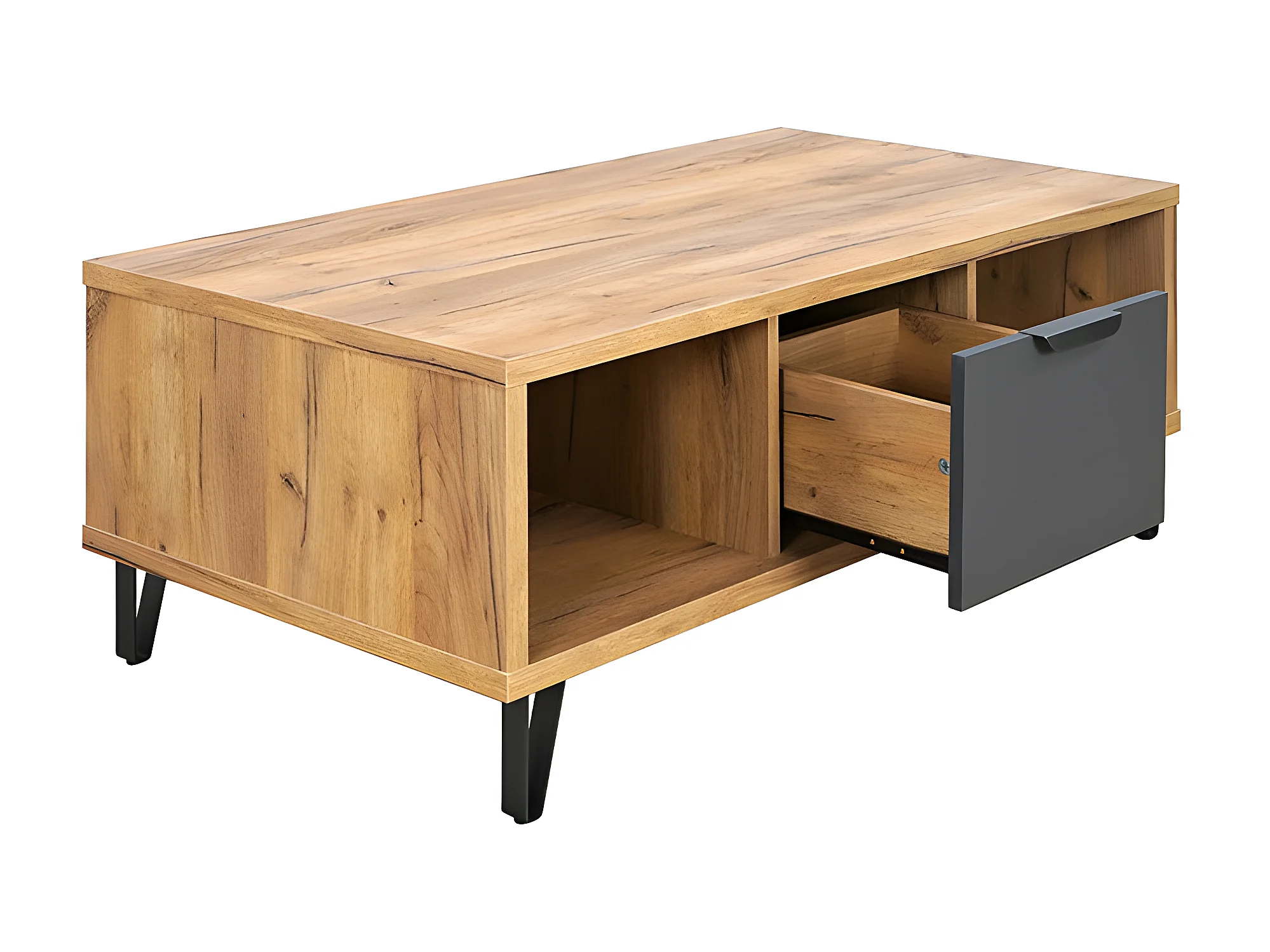 Table basse 1 tiroir 2 niches pieds métal Harry