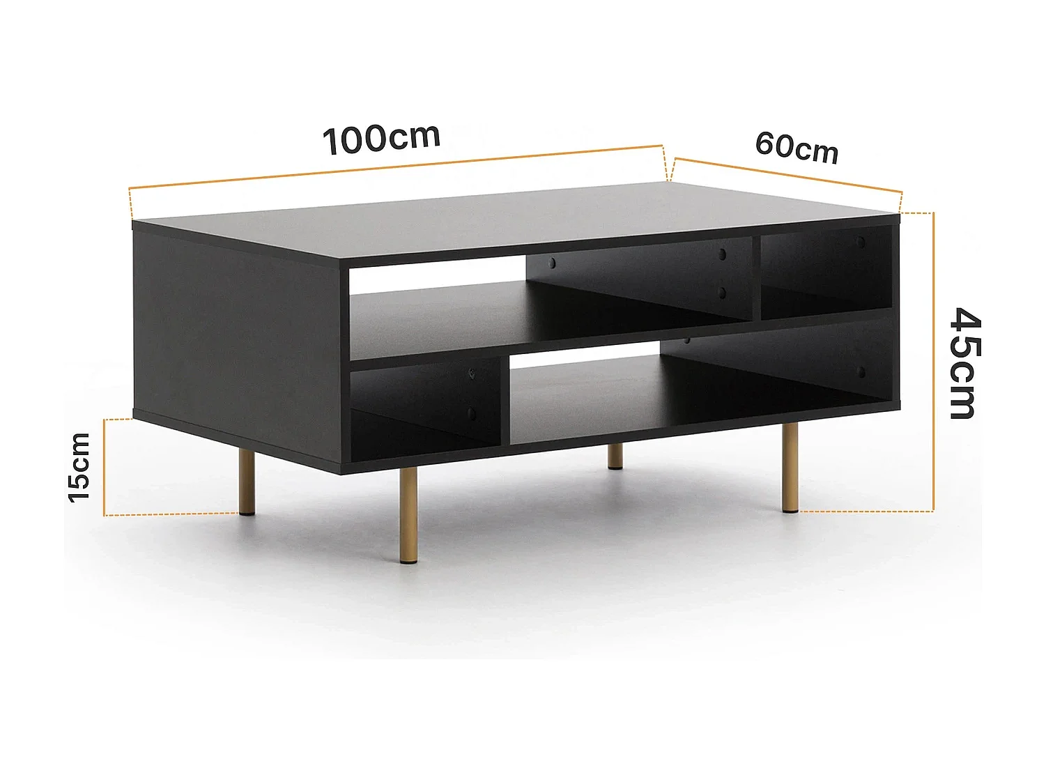 Table basse 100 cm Nubia - Noir et Pieds Dorés