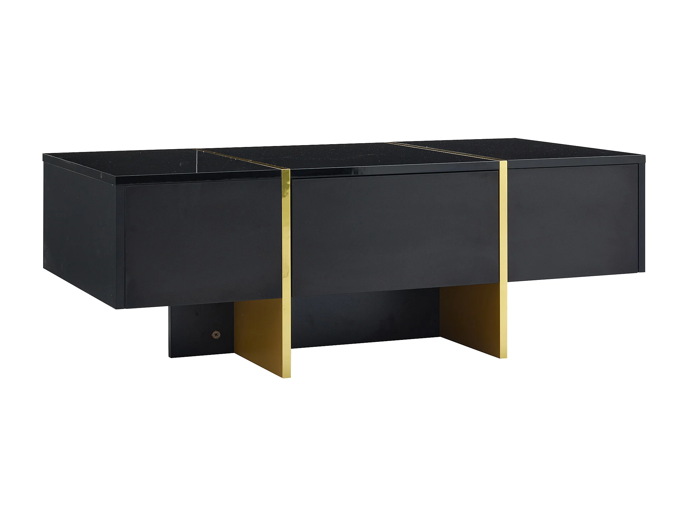 Table basse 100x50x40 cm rectangulaire plateau marbré brillant 2 tiroirs Noir salon moderne