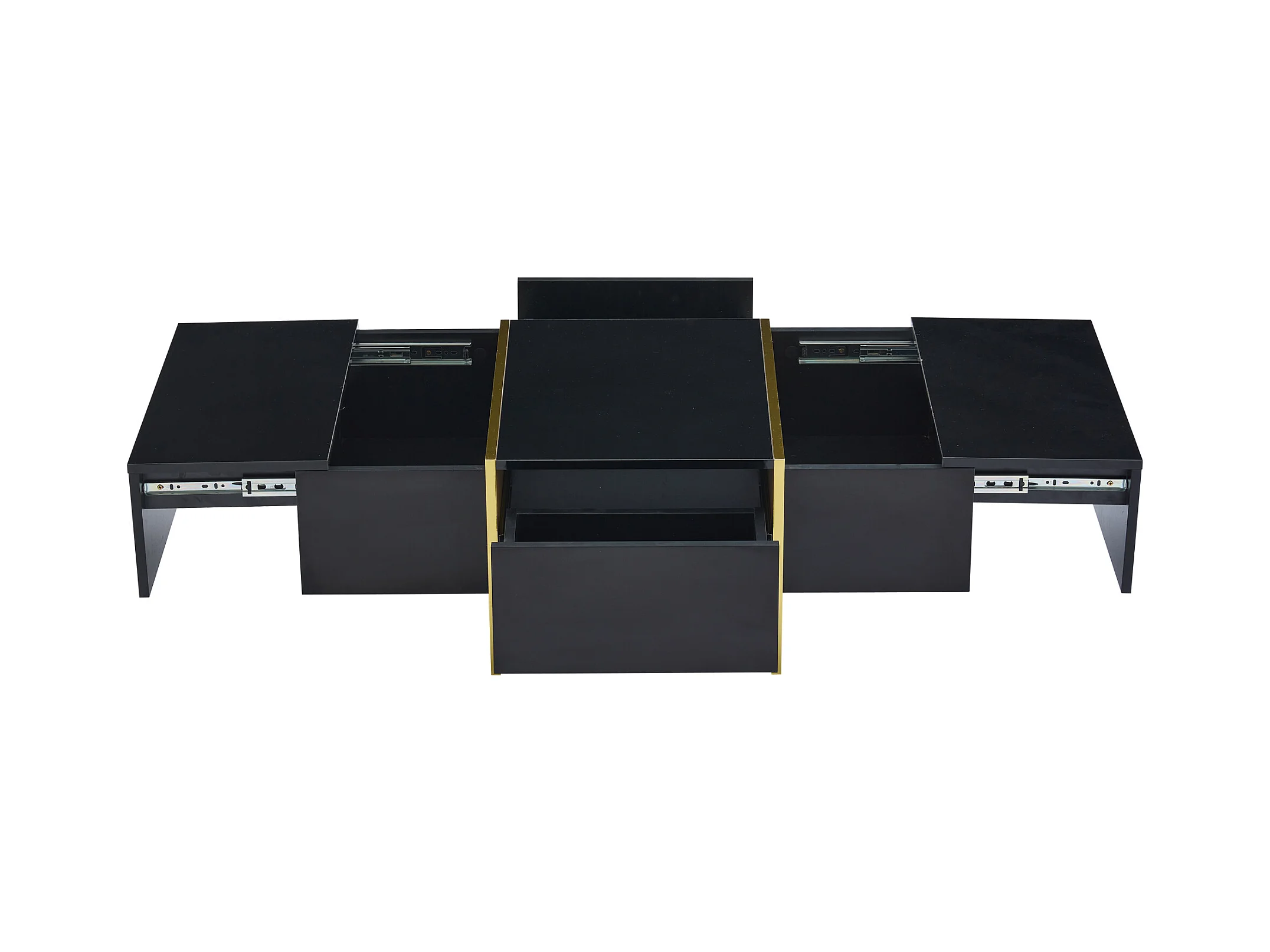 Table basse 100x60x40 cm 4 tiroirs plateau réglable brillant effet patchwork noir salon contemporain