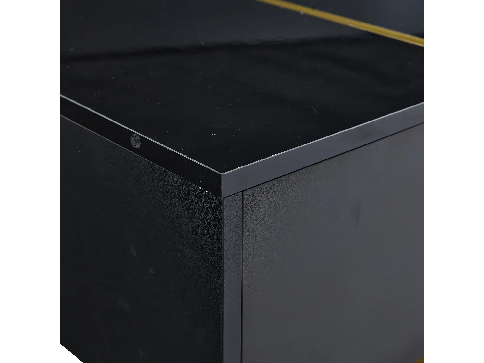 Table basse à deux niveaux LED RGB 16 couleurs surface brillant avec étagère ouverte et tiroir coulissant noir