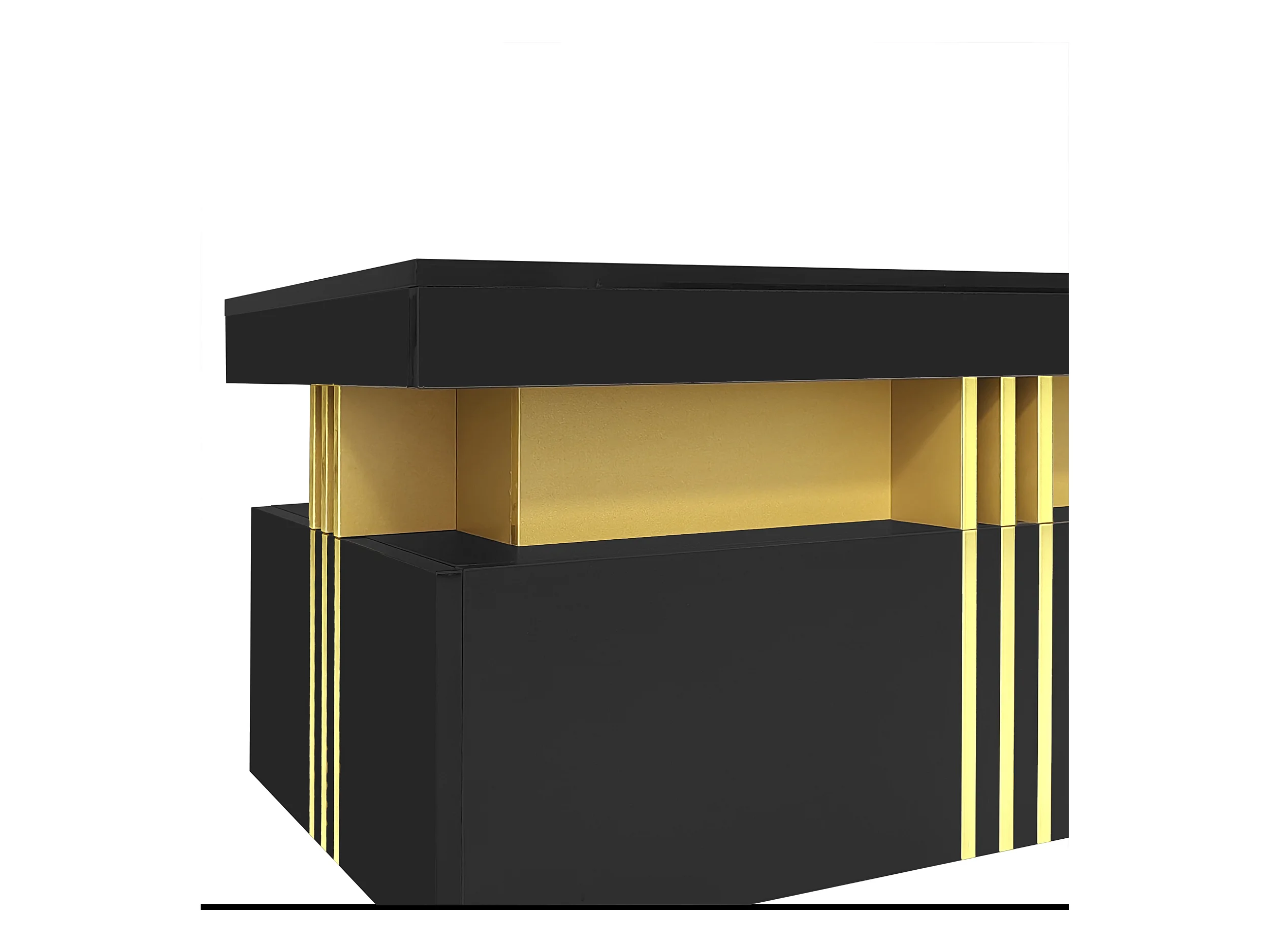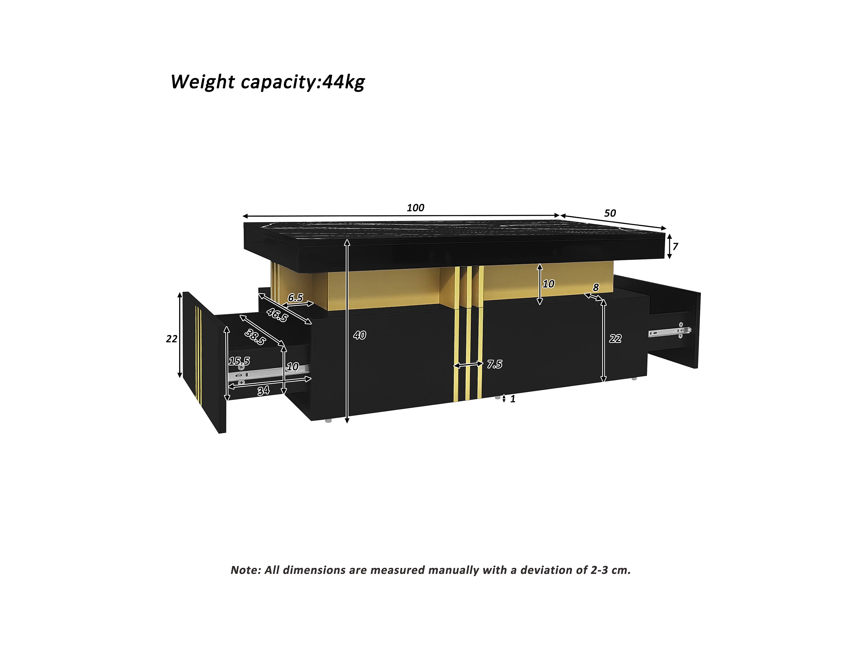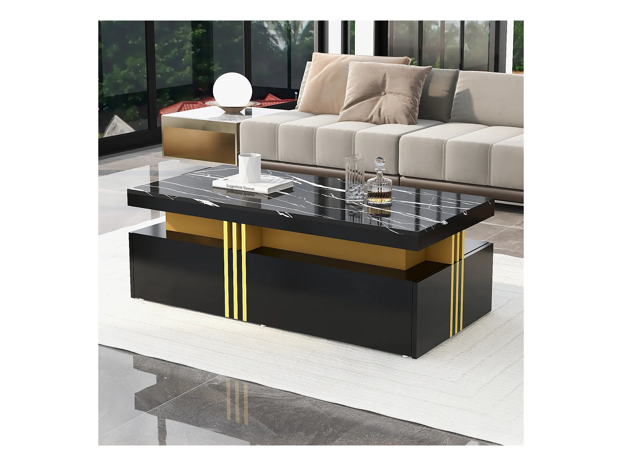 Table basse 100x50x40 cm rectangulaire plateau marbré brillant 2 tiroirs Noir salon moderne