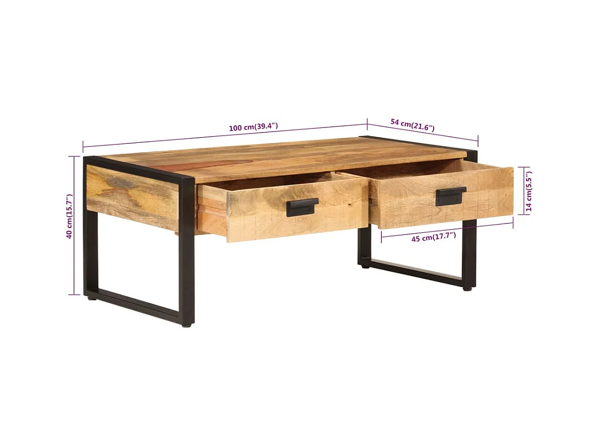 Table basse 100x54x40 cm bois de manguier solide et fer