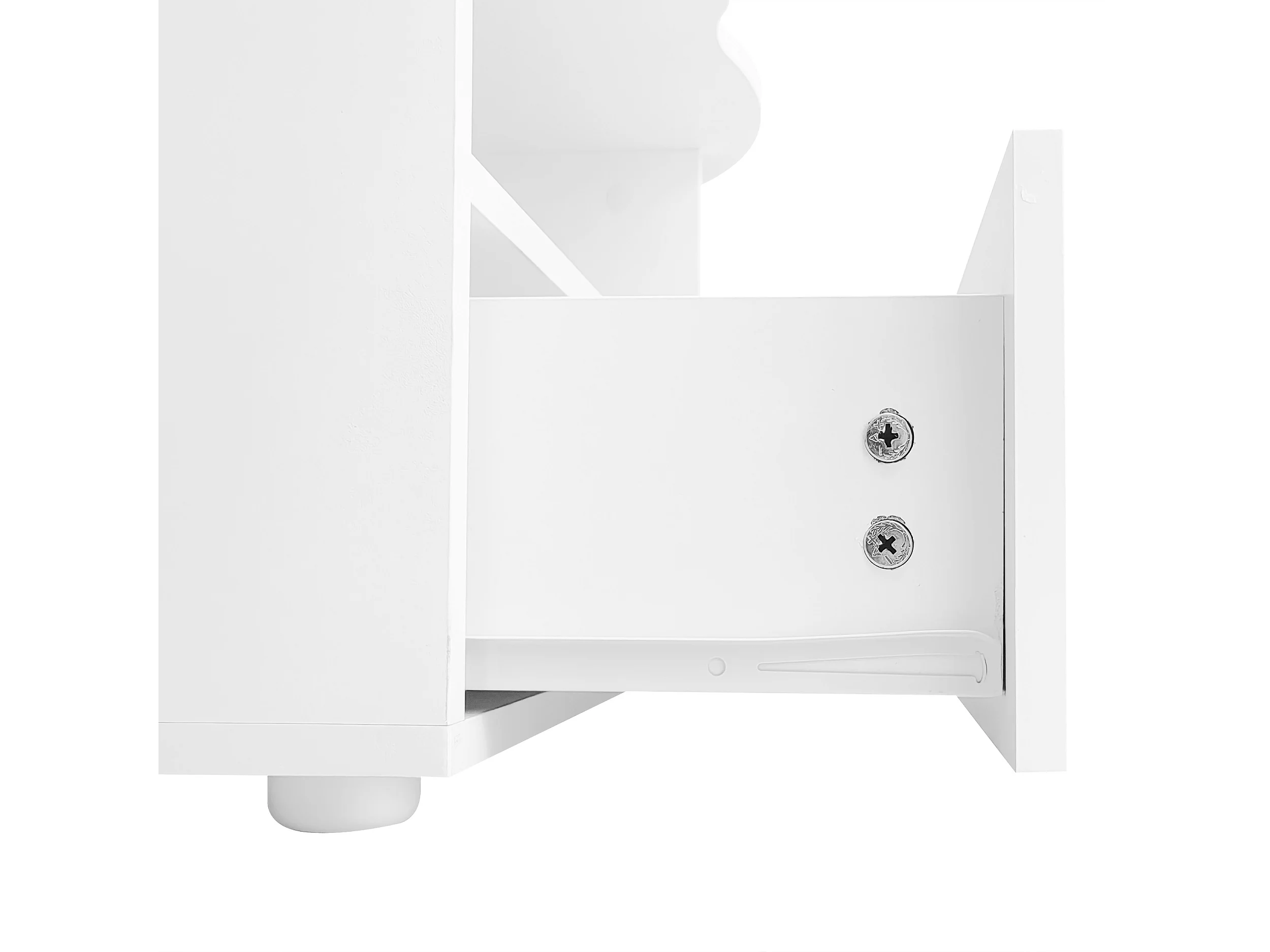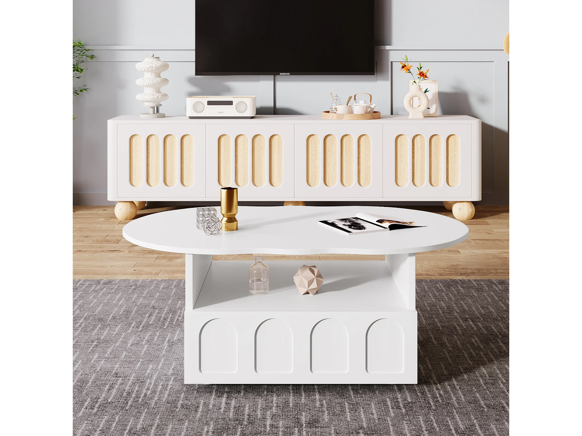 Table basse 100x60x40.5 cm, plateau en forme de nuage, tiroir push to open, niche ouverte, panneau de particules blanc