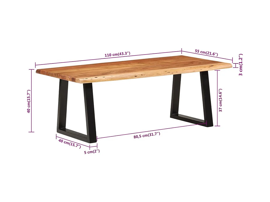 Table basse 110x55x40 bois massif d'acacia
