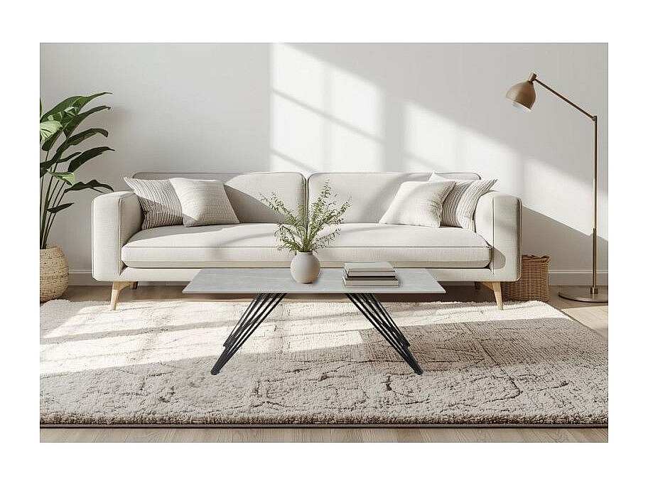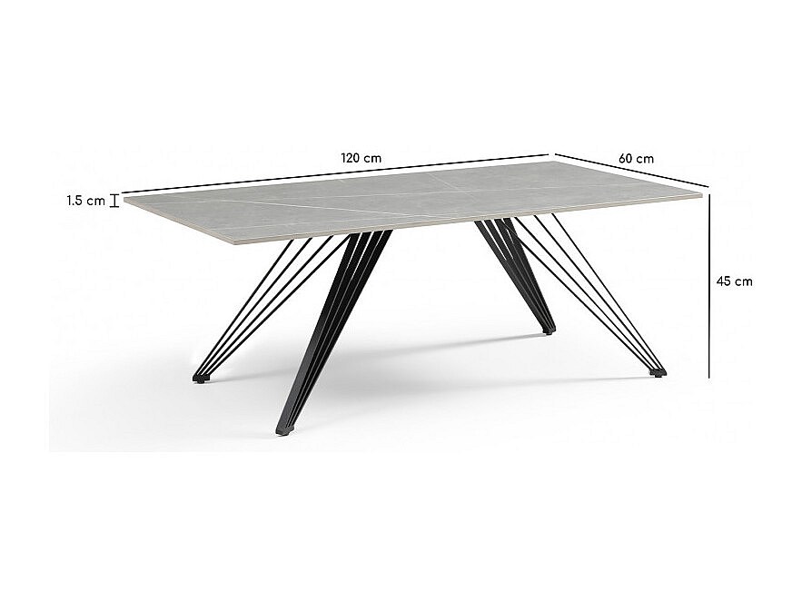 Table basse 120x60 cm céramique gris marbré pieds filaires - ARIZONA 01