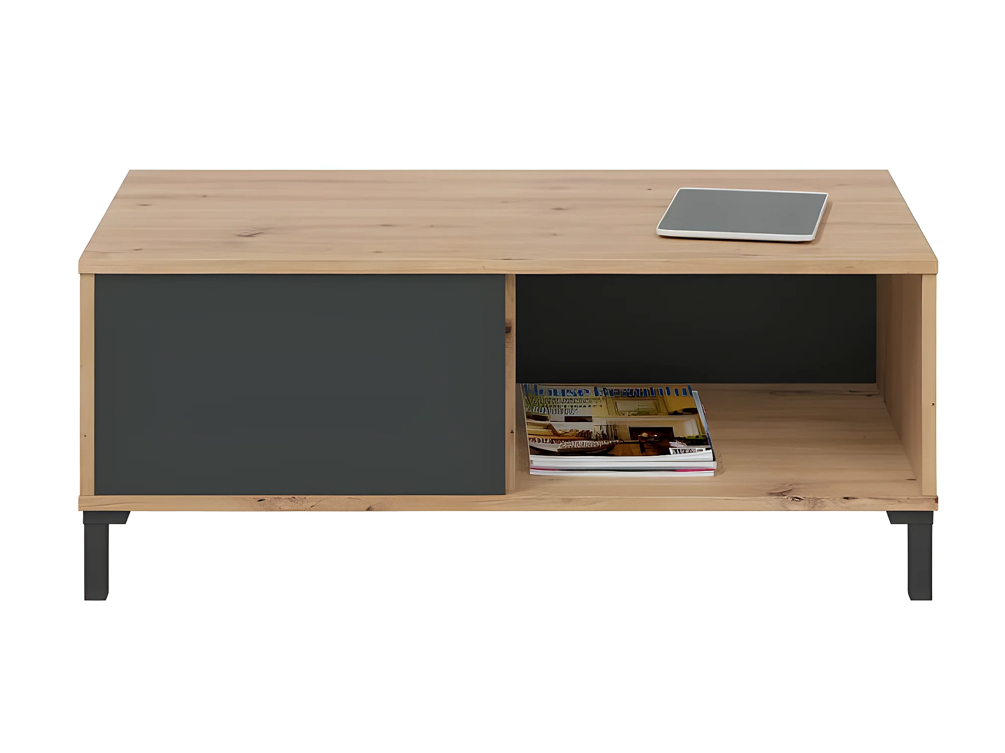 Table basse 2 niches Béton/Chêne - CALIA - L 100 x l 50 x H 40 cm