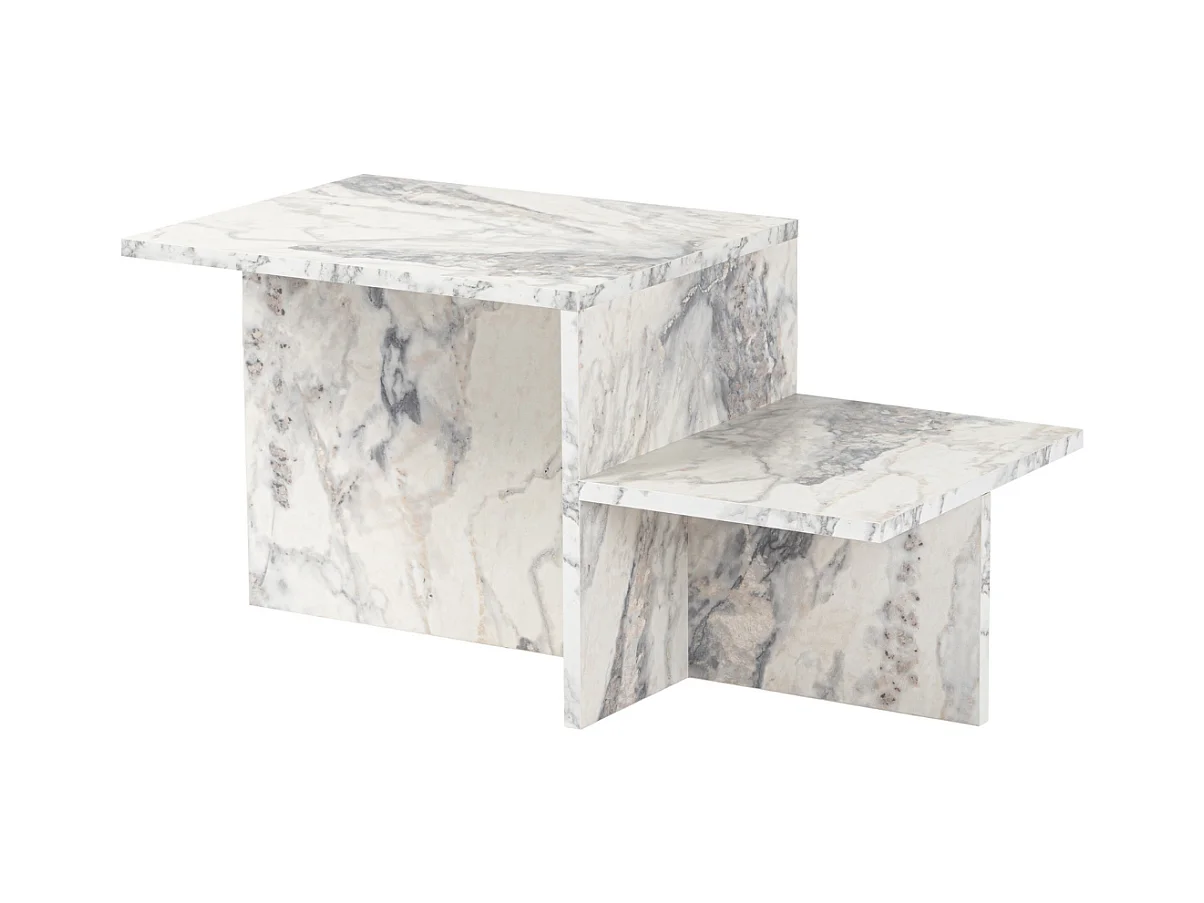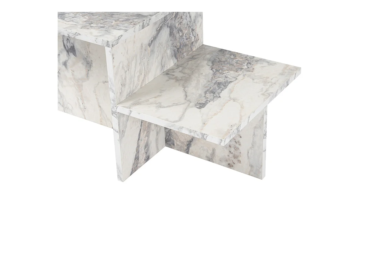 Table Basse de Salon Effet Marbré 80x40x80 cm MDF et Metal | Grande Table de Canapé Ronde Blanche Noir | Design Table d'appoint Moderne