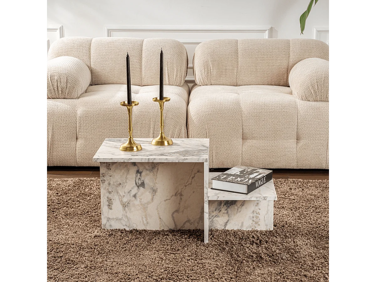 Table basse en bois "Iris" - 80 x 50 x 40 cm - Travertin