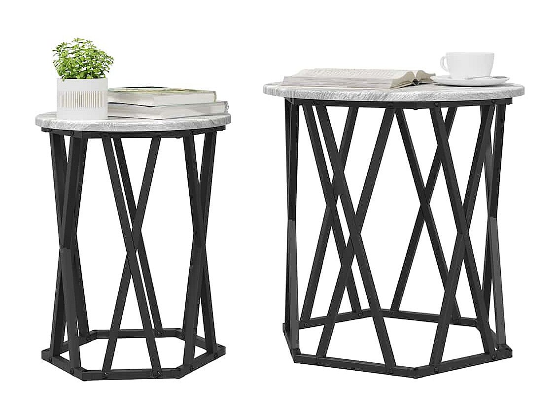 Ensemble de tables d'appoint 2 pièces Gris sonoma et Noir