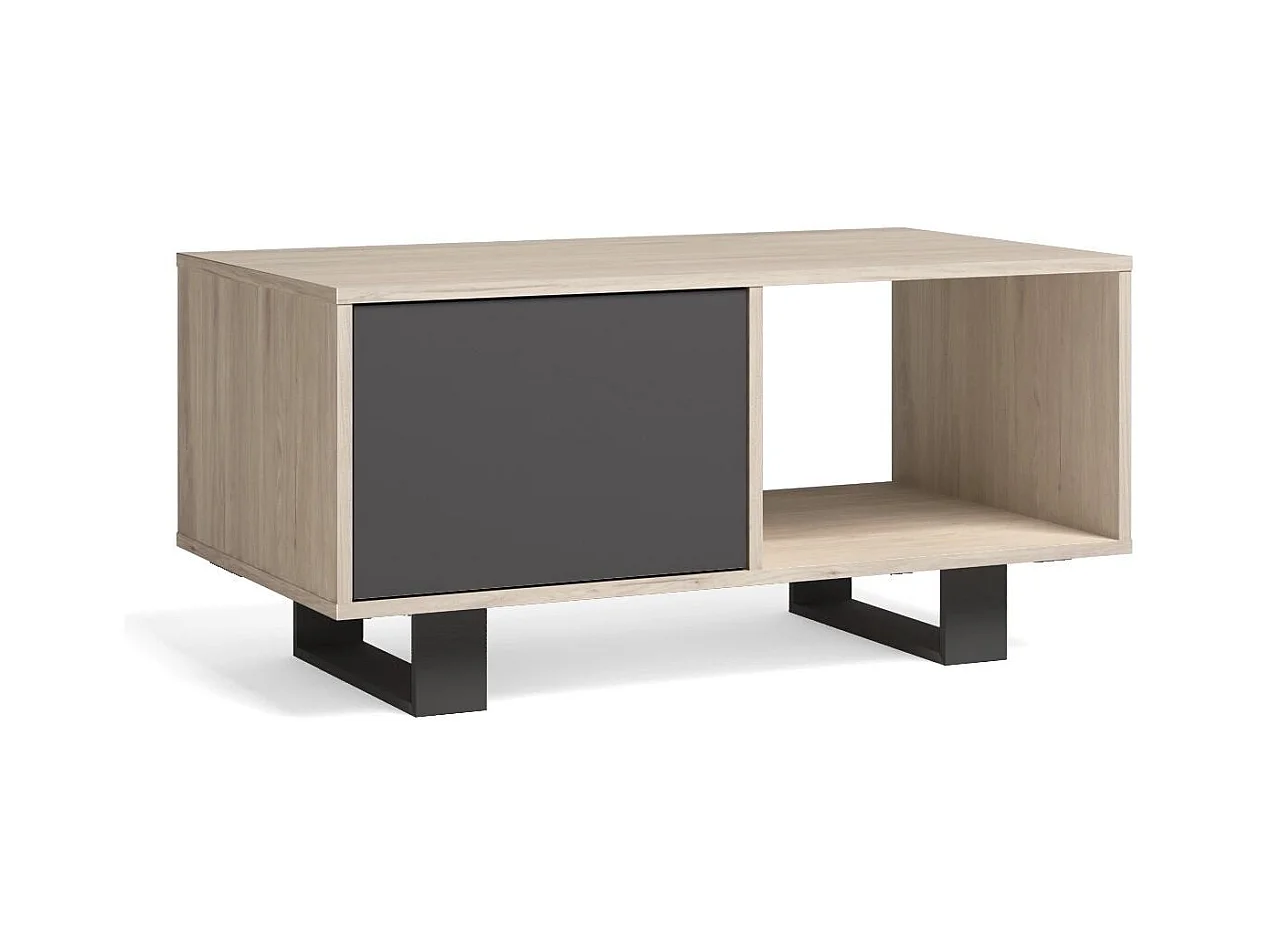 Table basse avec portes, Modèle WIND, structure Chêne, portes Gris Anthracite, 91,5x50x45cm