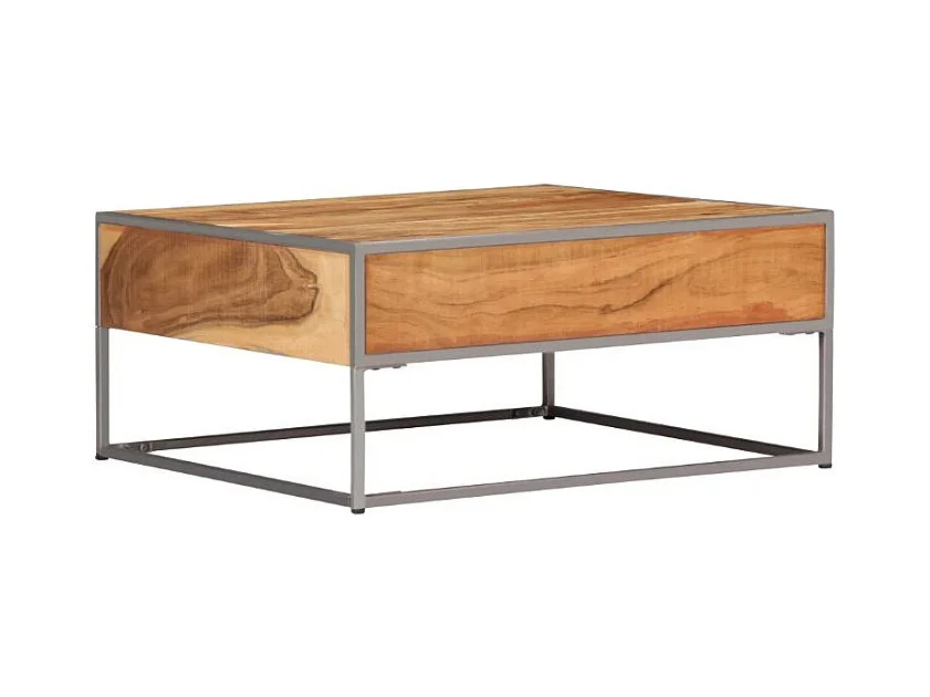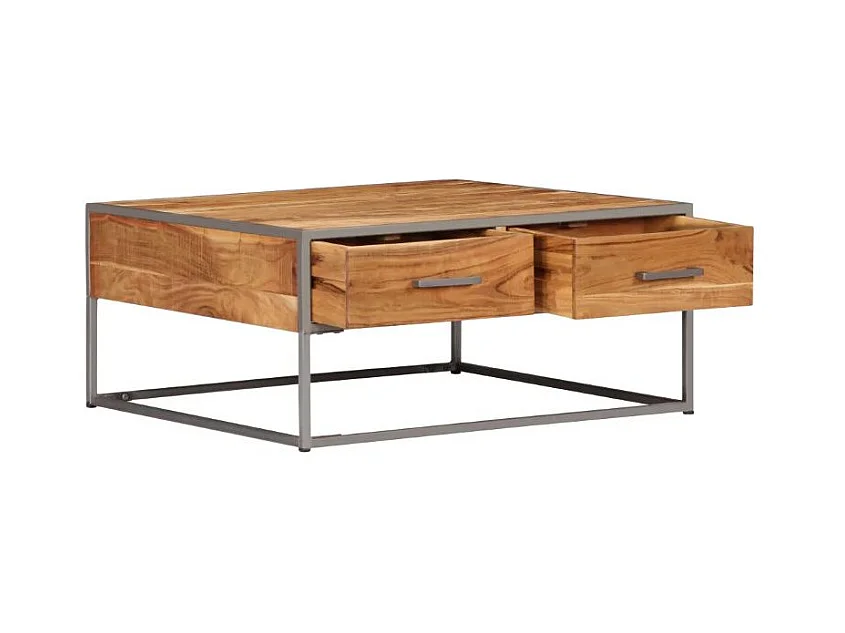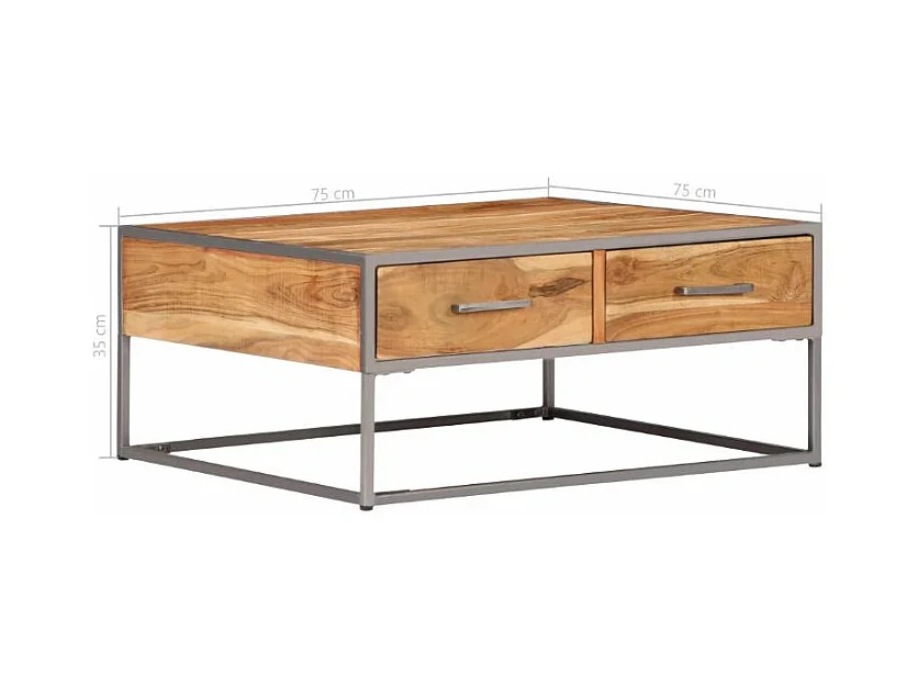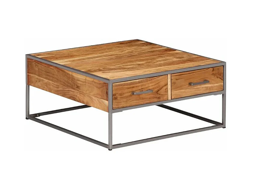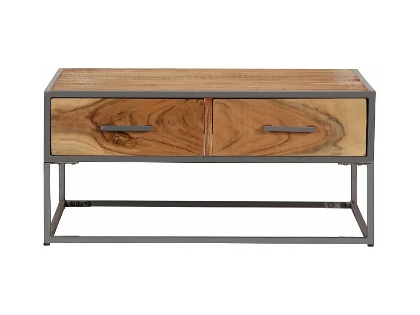 Table basse 2 tiroirs 2 tiroirs acacia massif clair et métal gris Babola