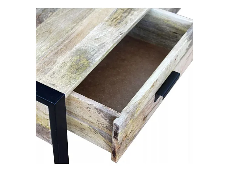 Table basse 2 tiroirs manguier massif clair vieilli et métal noir Grey