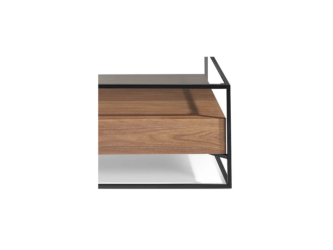 Table basse 2 tiroirs Verre/Métal/Noyer - LIVER