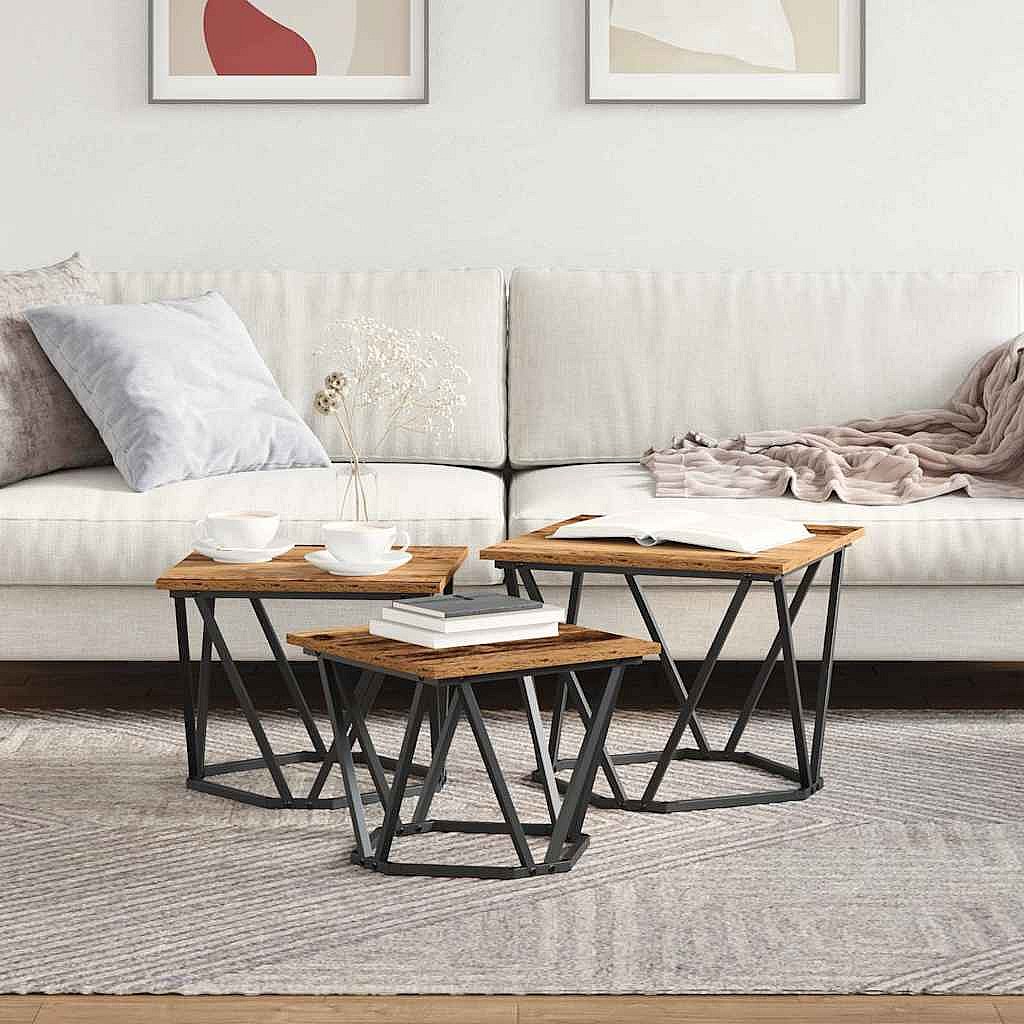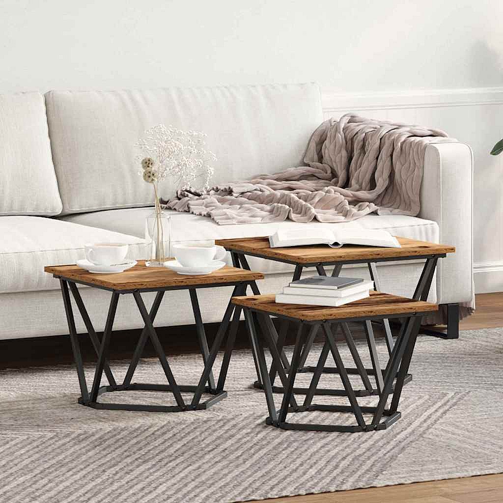 Table basse 3 pièces Bois ancien 50 x 50 x 40 cm