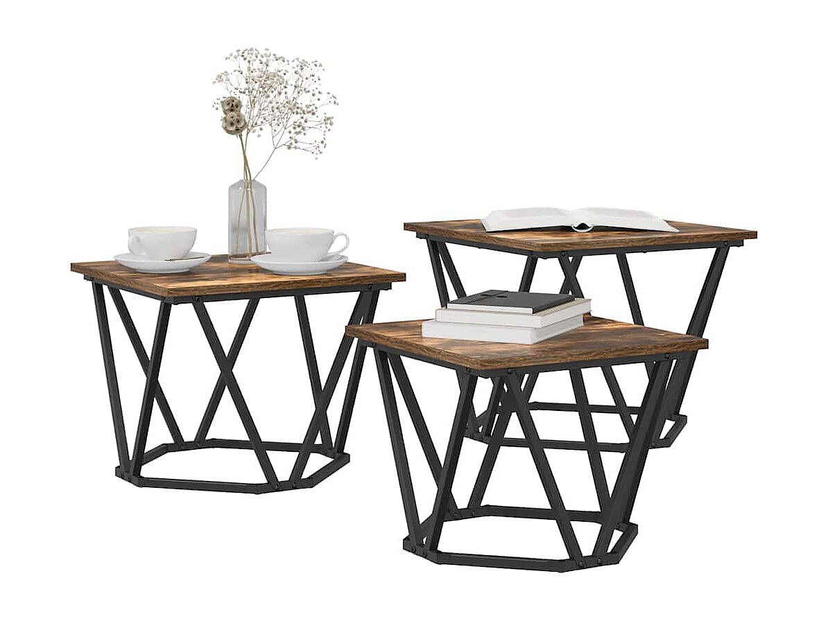 Table basse 3 pièces Chêne fumé 50 x 50 x 40 cm