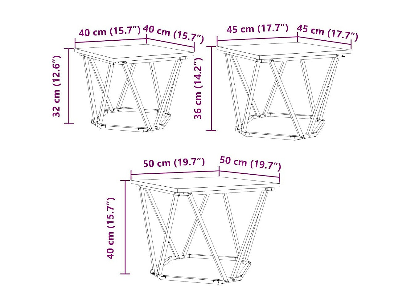 Table basse 3 pièces Sonoma gris 50 x 50 x 40 cm