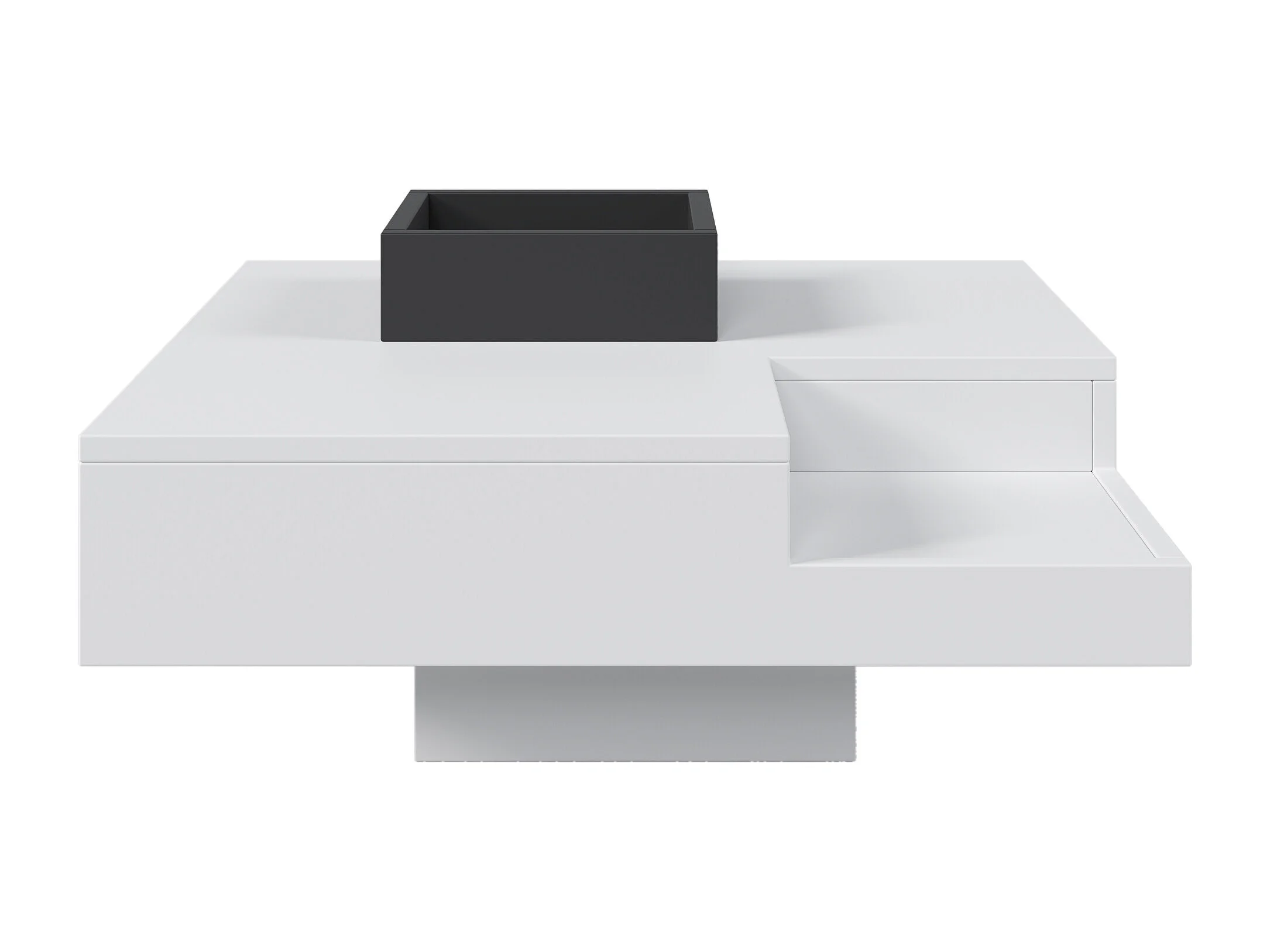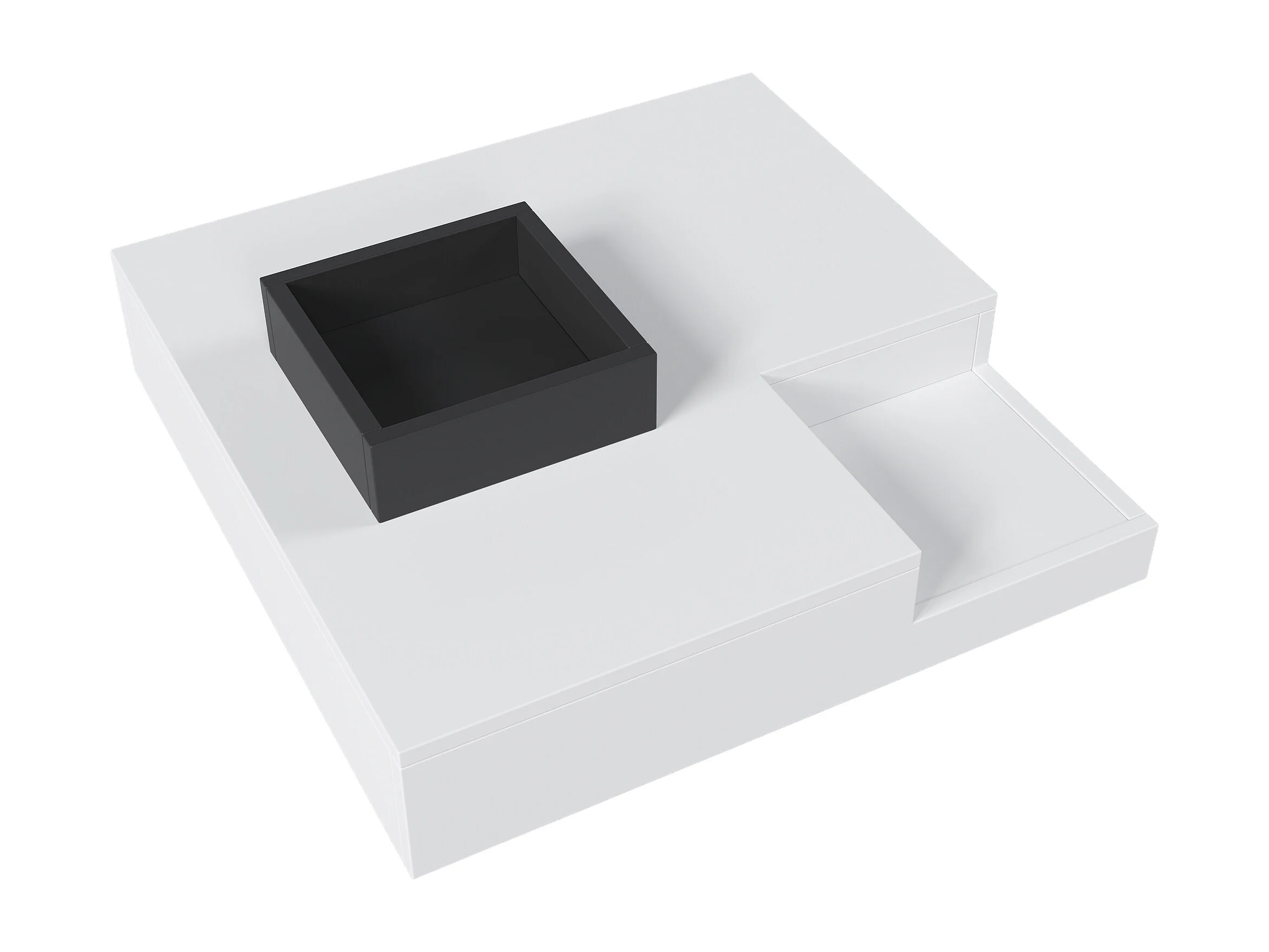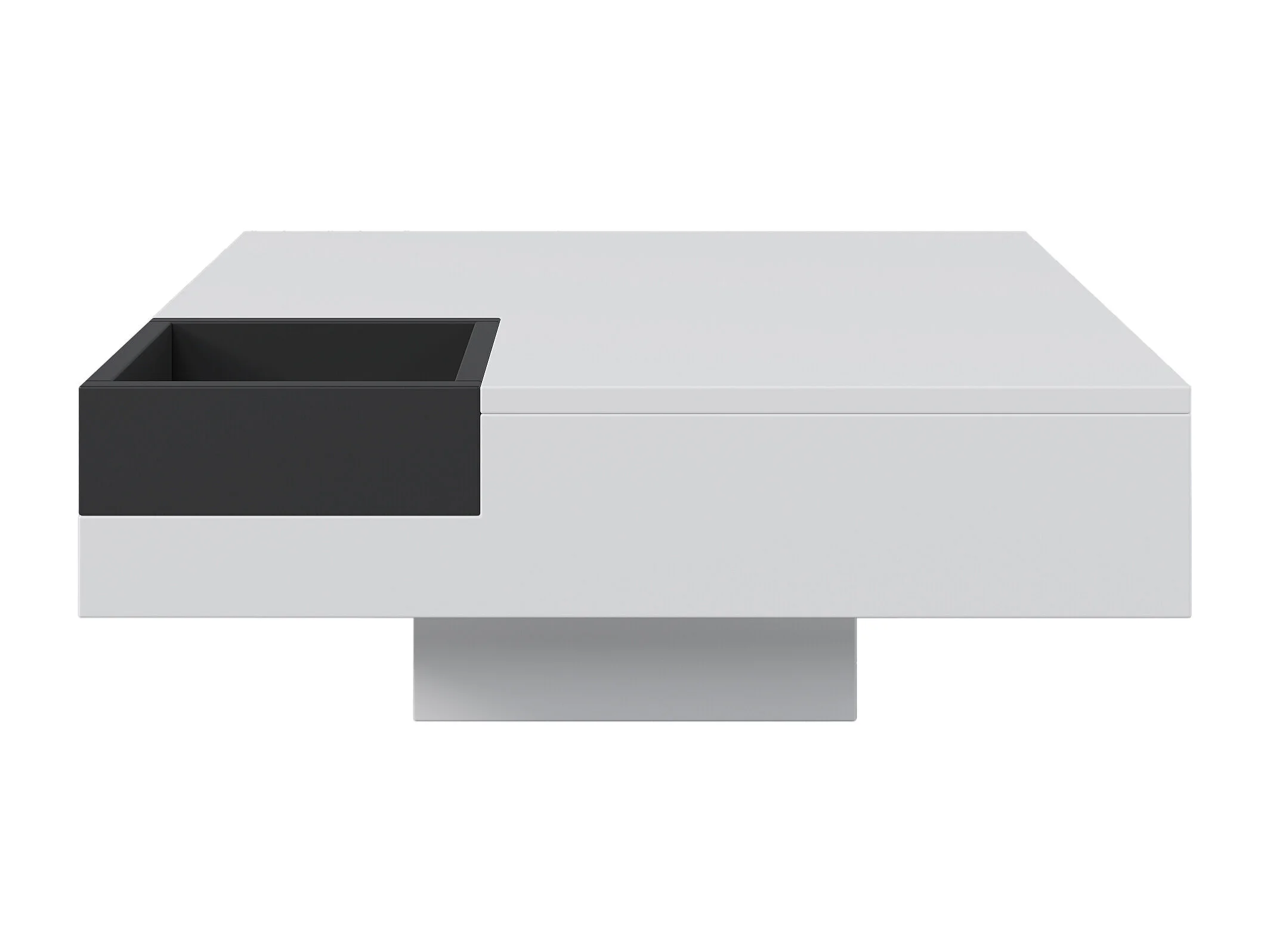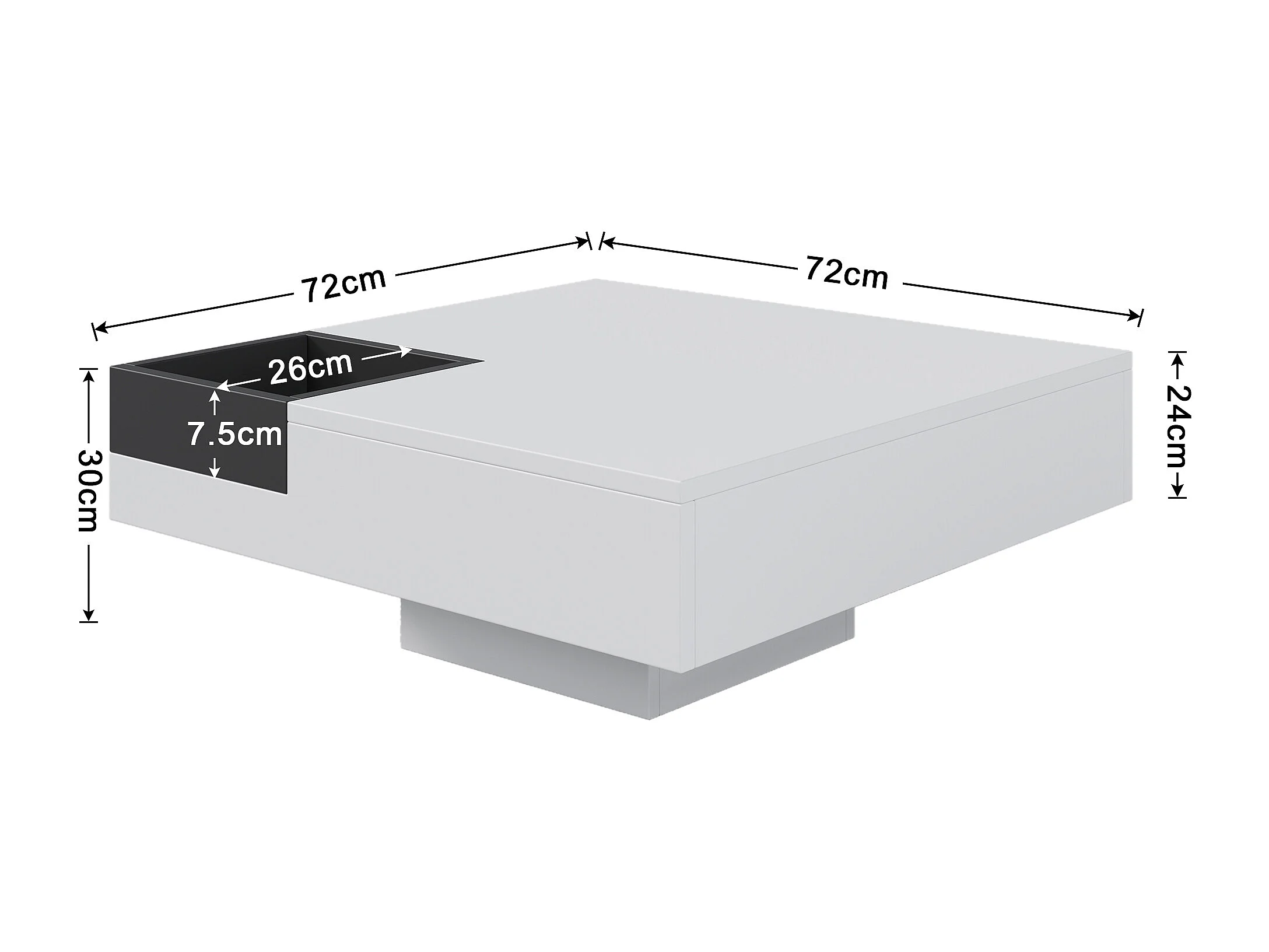 Table basse 72x72x30 cm, boîte de rangement amovible, éclairage LED multicolore, panneaux de particules blanc et noir