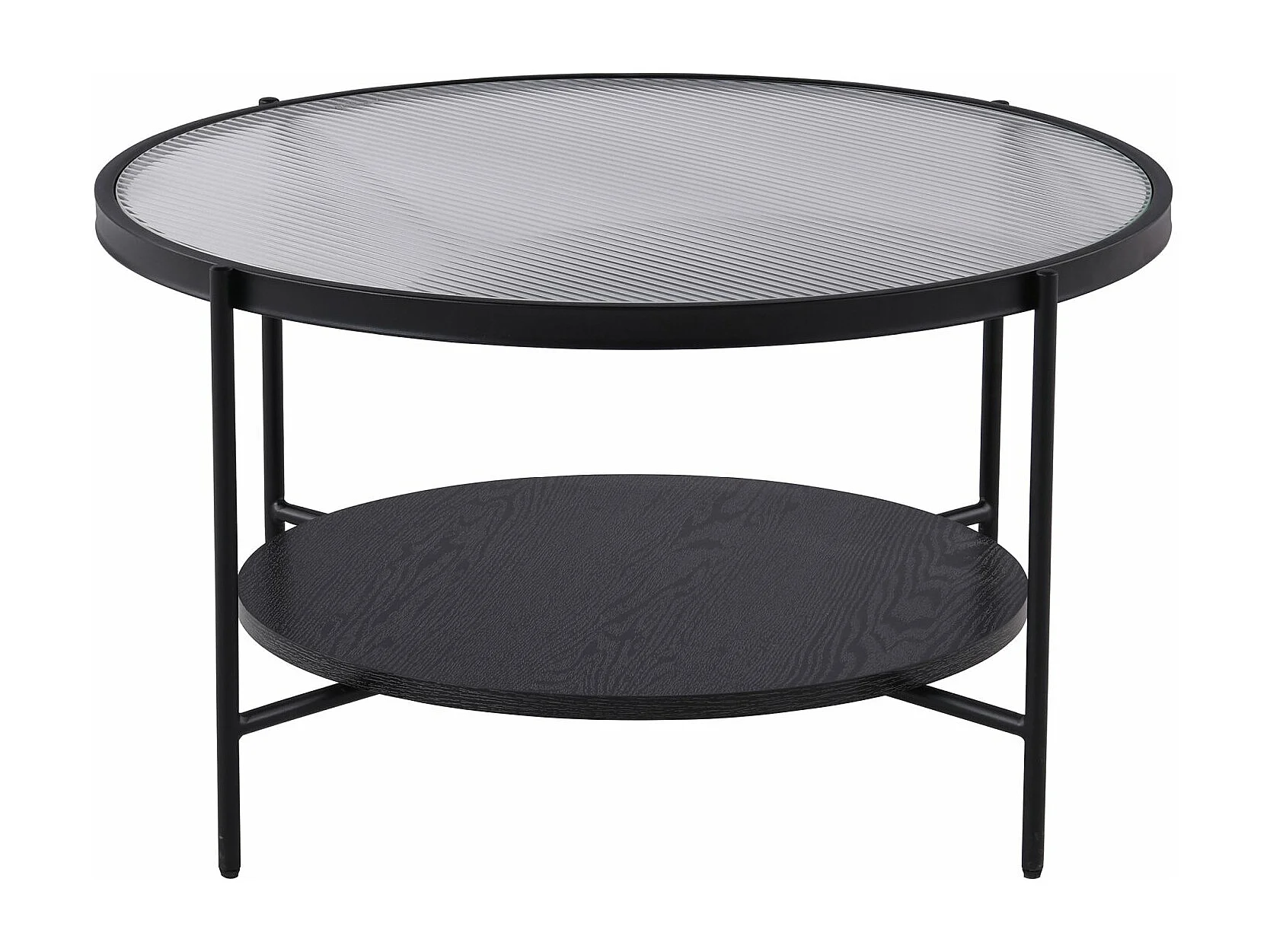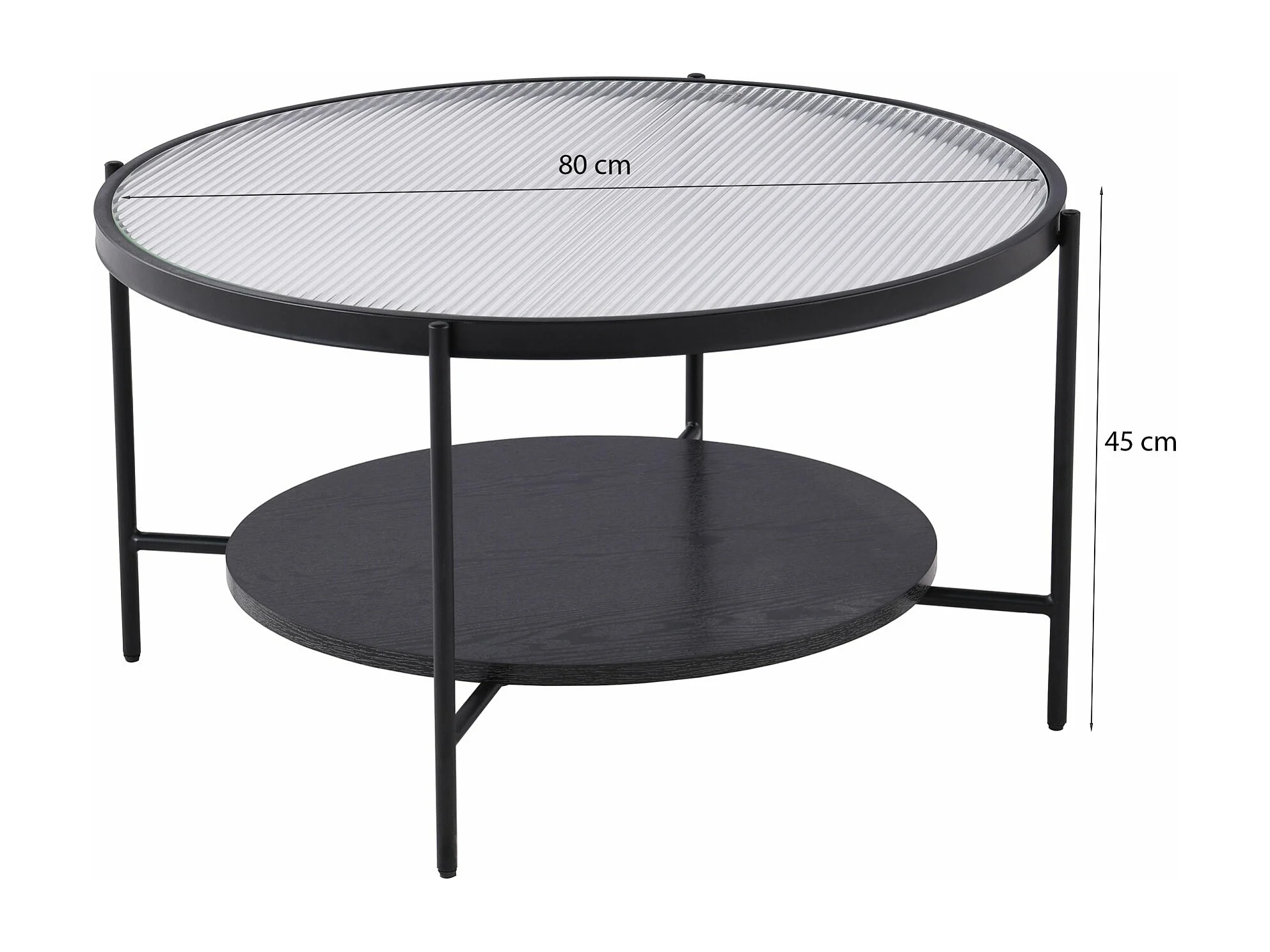 Table basse - 80 cm - noire avec verre cannelé - MALETH
