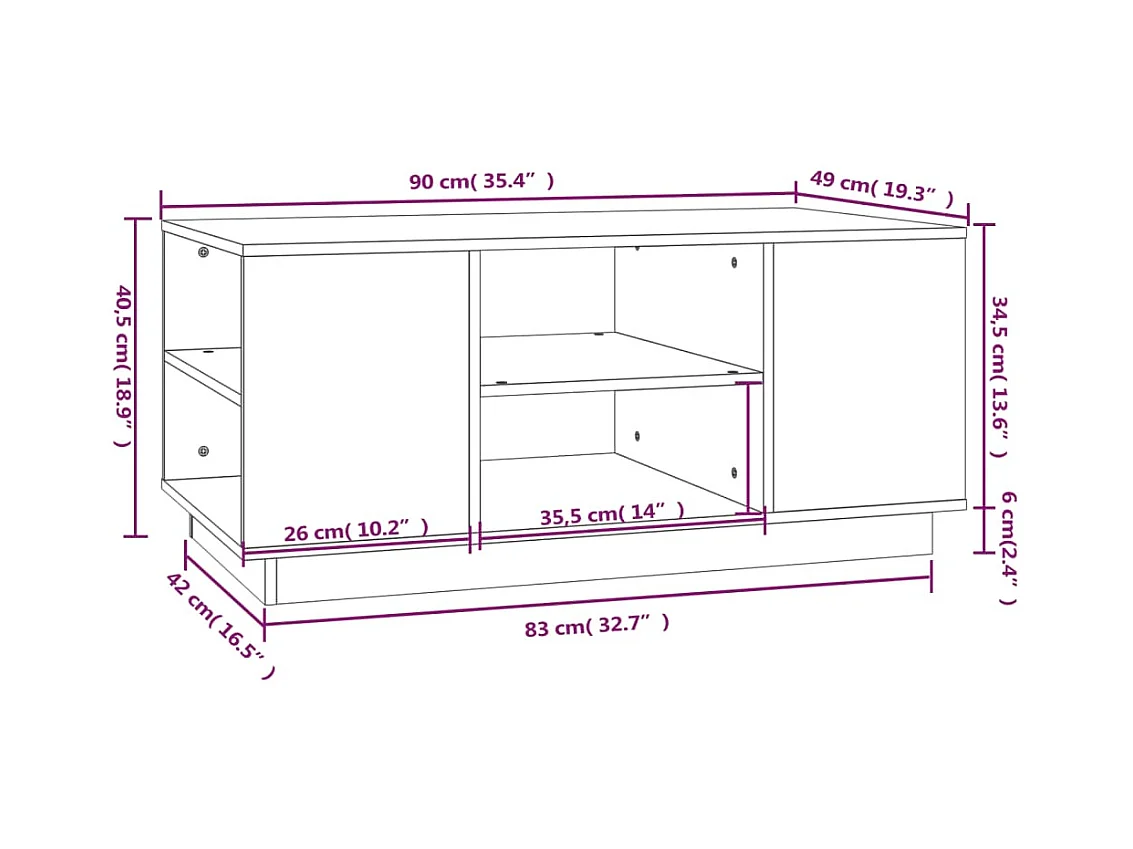 Table basse chêne marron 90x60x35 cm bois d'ingénierie