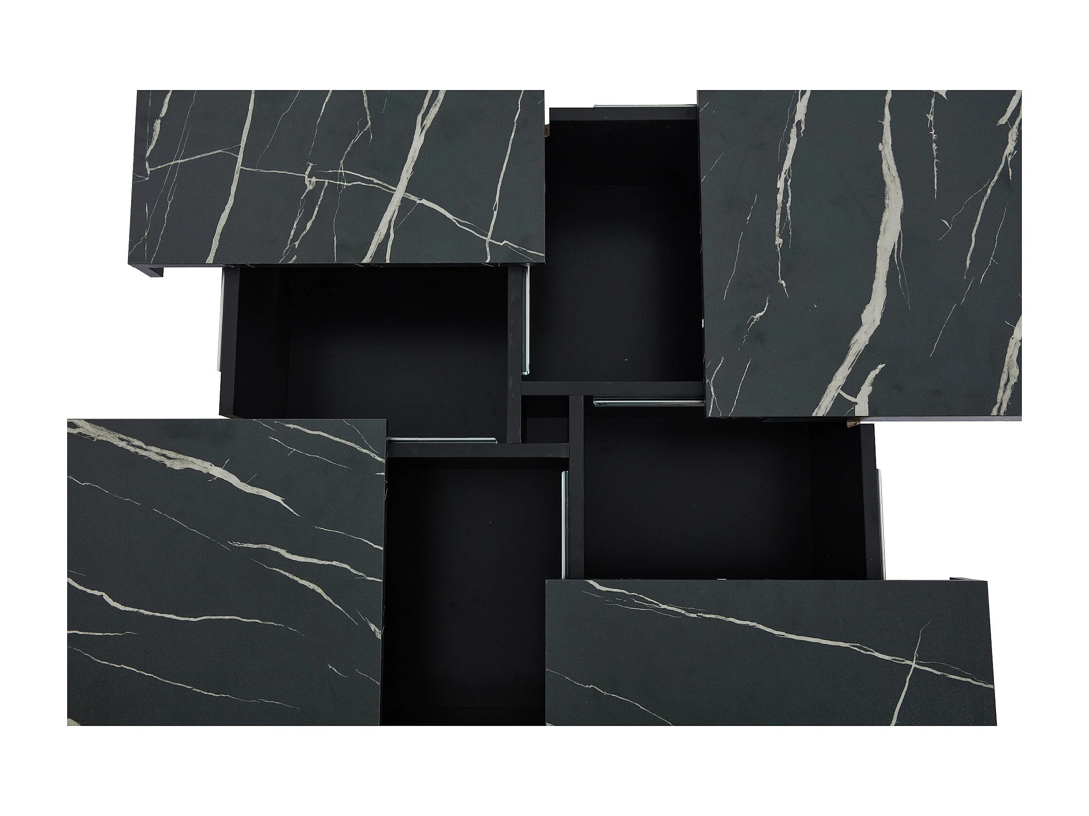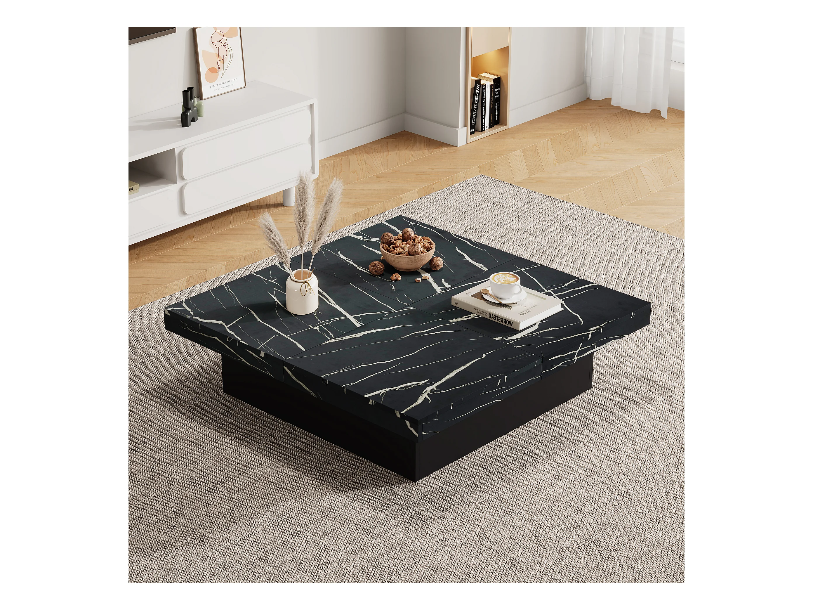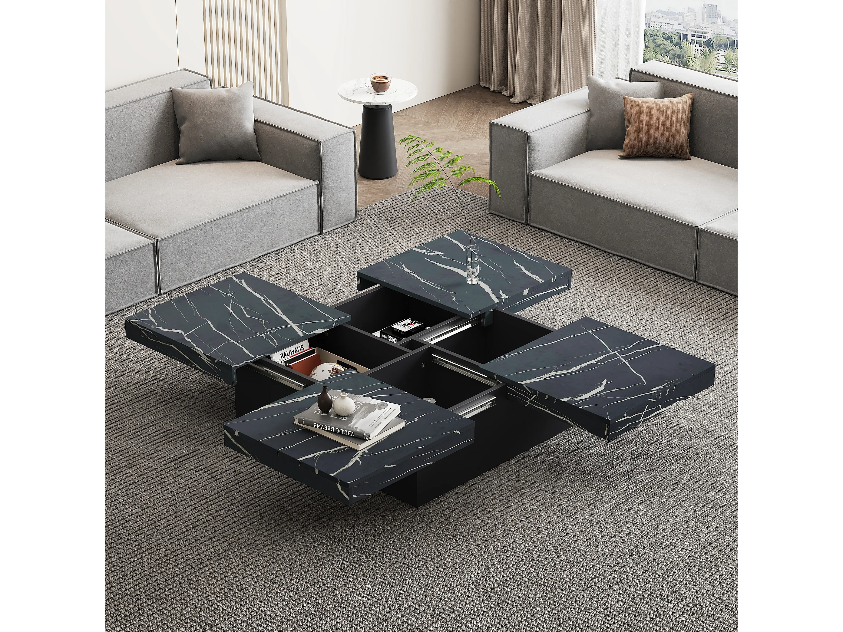 Table basse 90x90x25cm marbre 4 tiroirs plateau coulissant noir pour salon