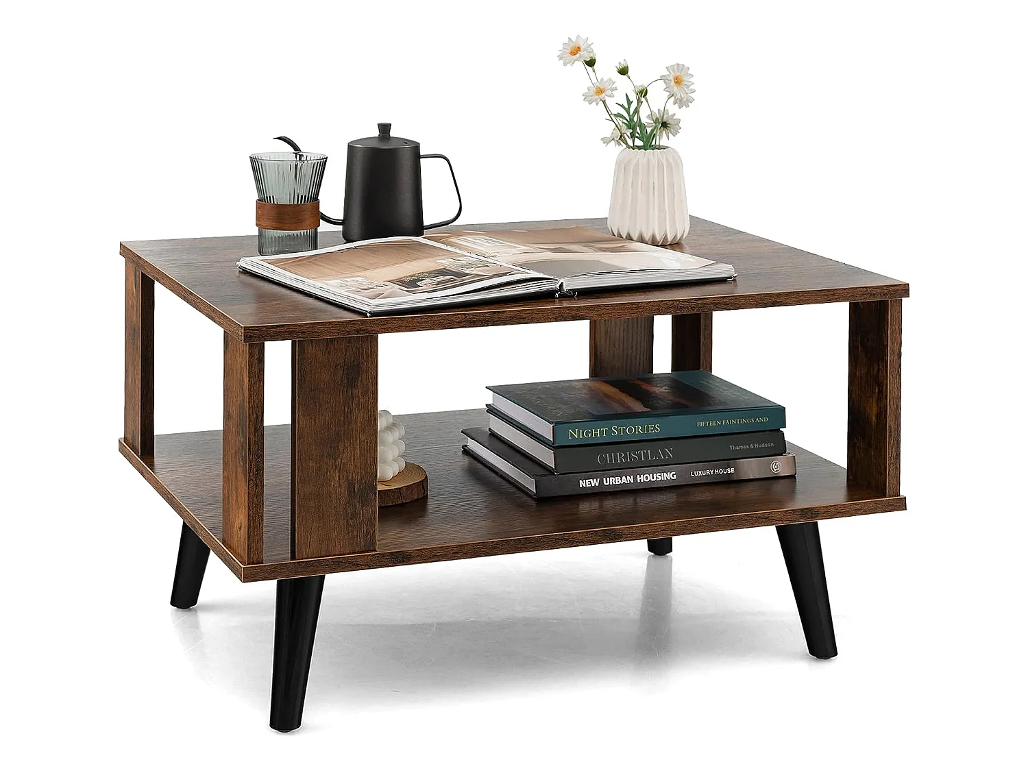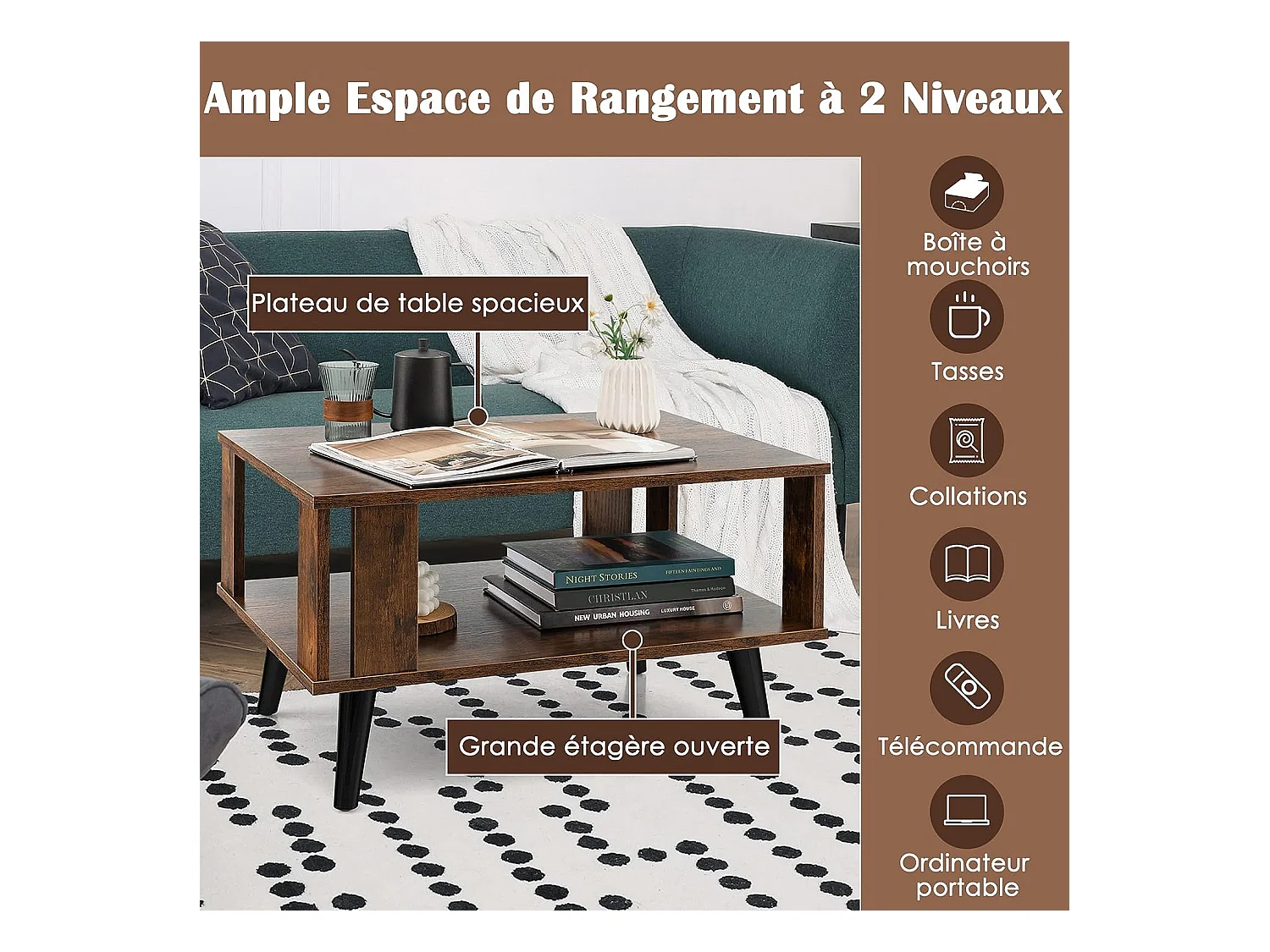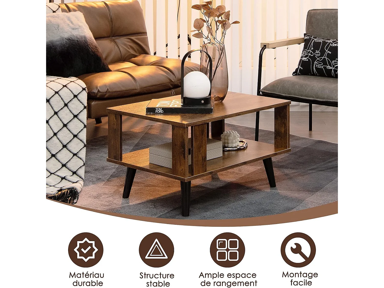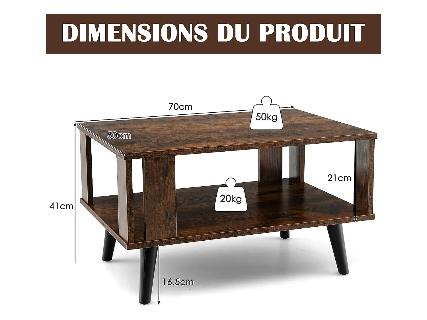 Table basse à 2 niveaux, table d'appoint industriel 4 jambes patins antidérapants 70 x 50 x 41 cm