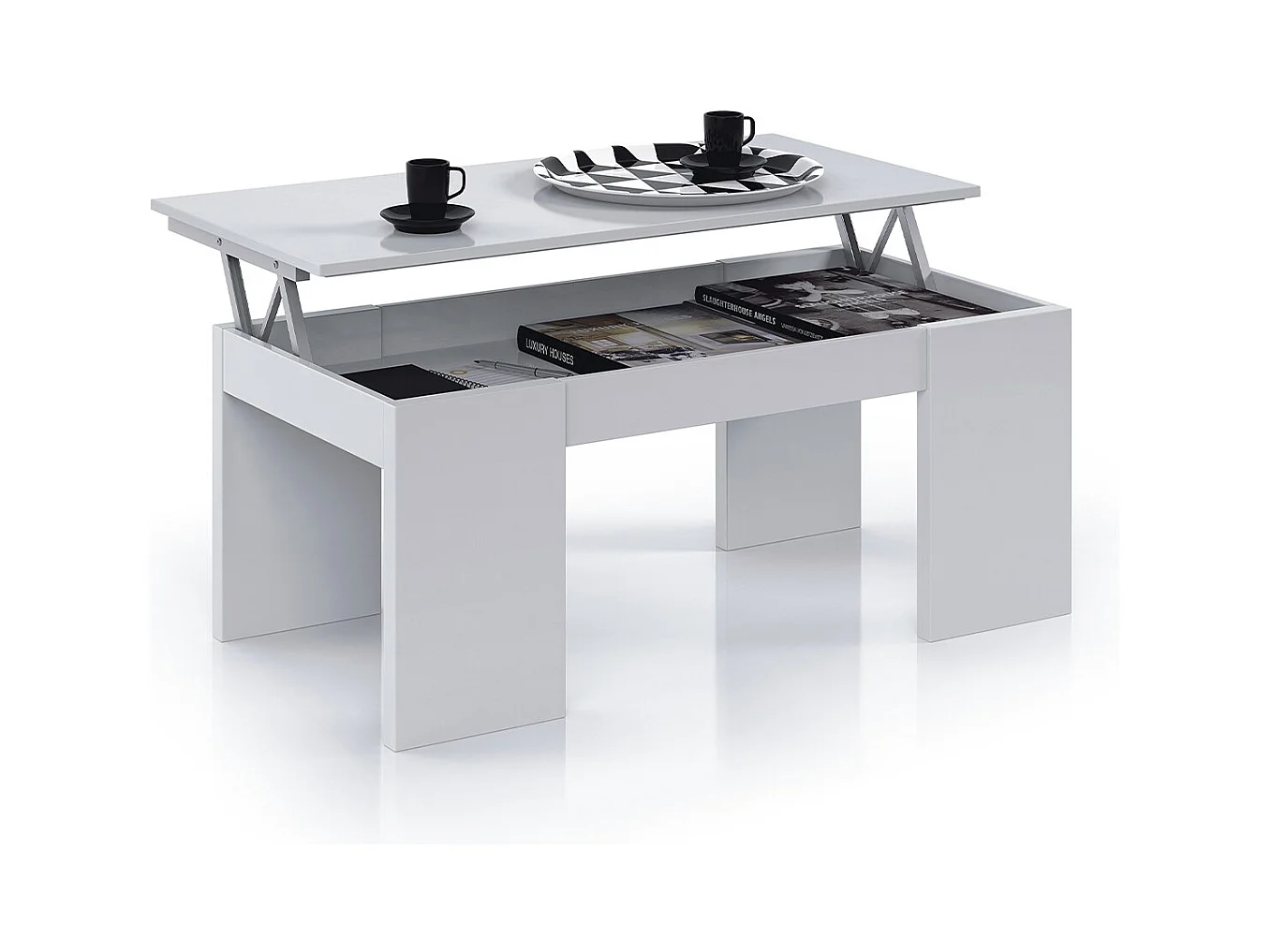 Table basse Ddav, Table basse avec plateau relevable, Table basse de salon, 105x55h45/56 cm, Blanc