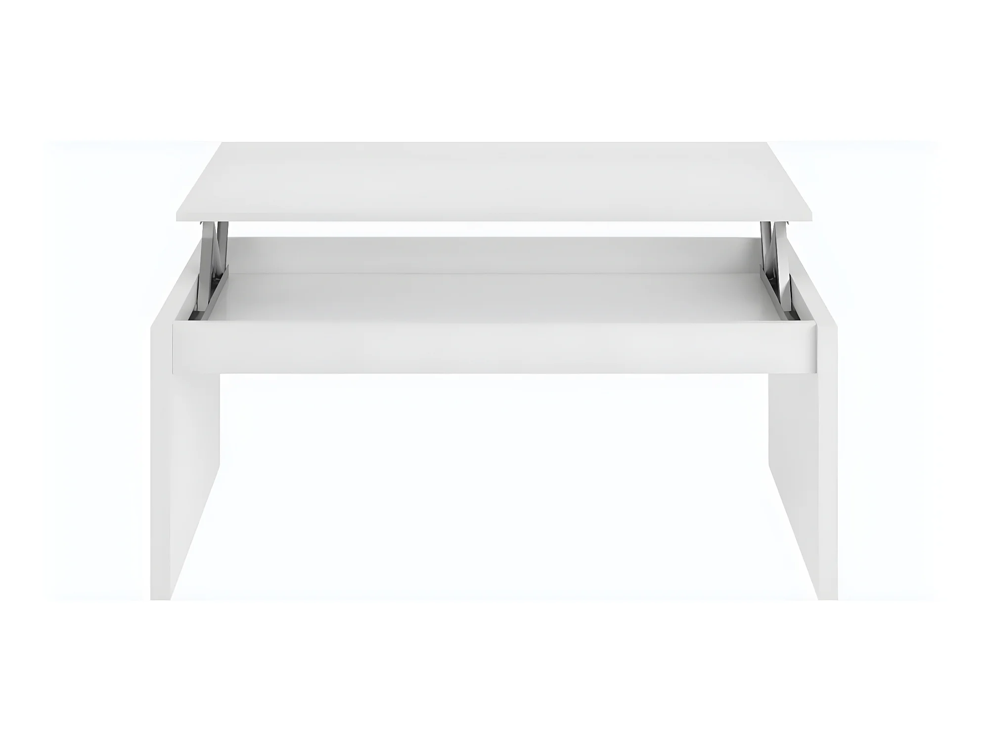 Table Basse à Plateau Relevable couleur blanc brillant - Longueur 100 x Hauteur 42/54 x Profondeur 50 cm