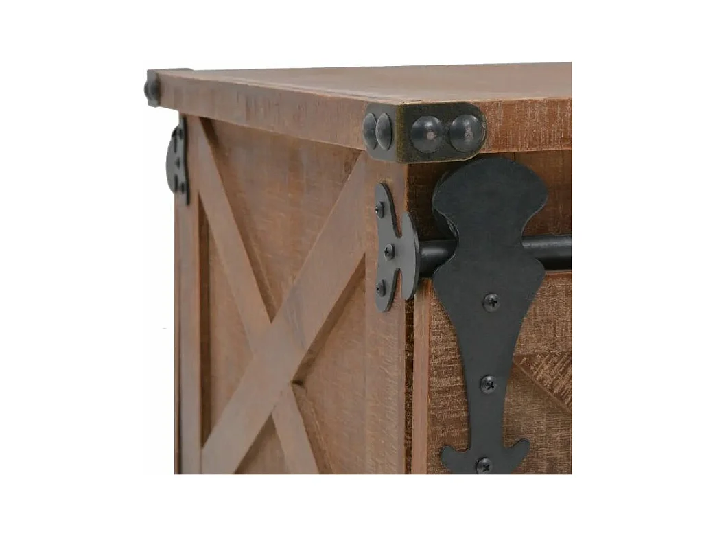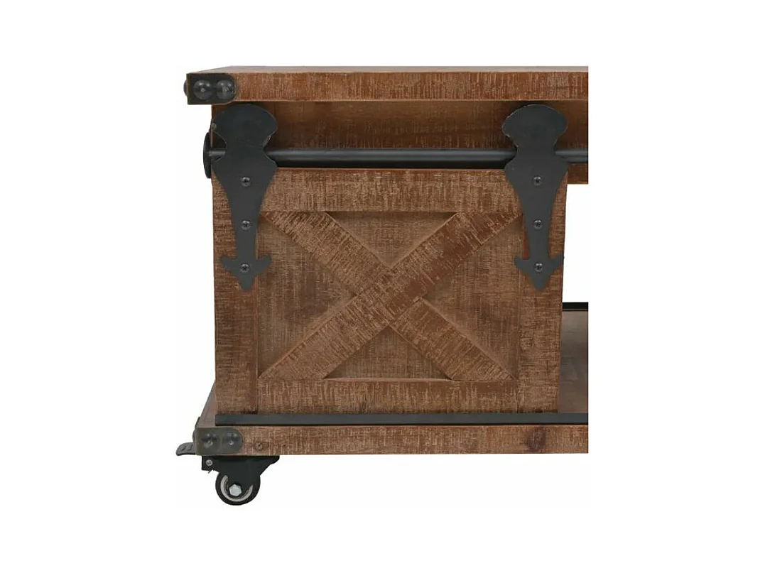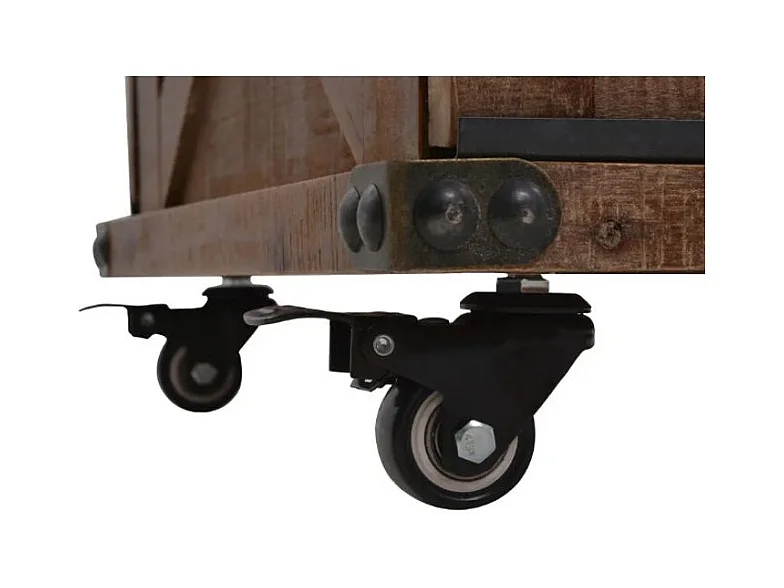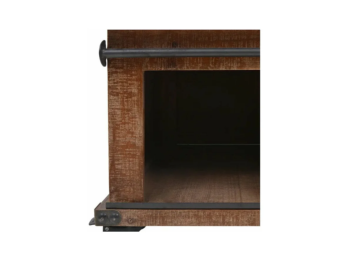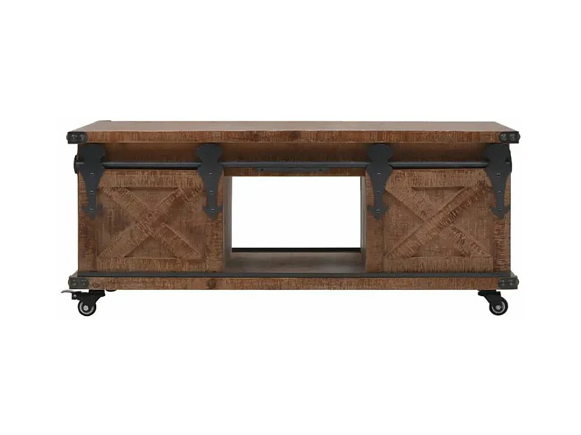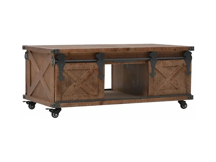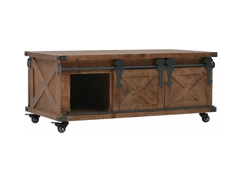 Table basse à roulettes 2 portes pin massif foncé et métal noir Cassie