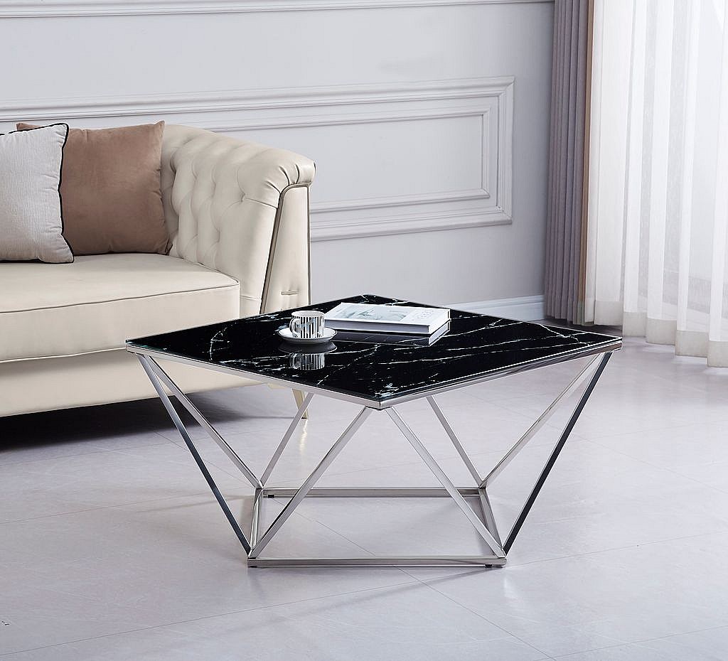 Table Basse ALINA Chrome plateau en verre trempé 80x80x45 cm