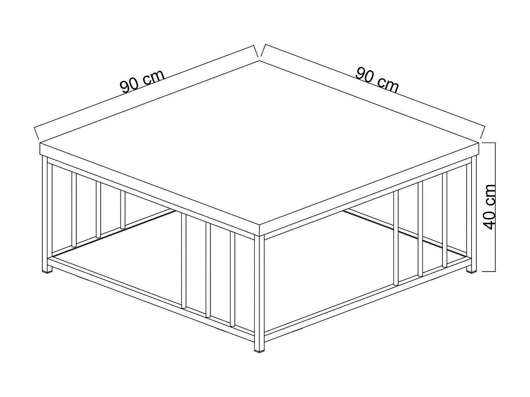 Table basse Ankaa, Table basse, Porte-revues pour canapé, Etagère de salon, 90x90h40 cm, Anthracite et Or
