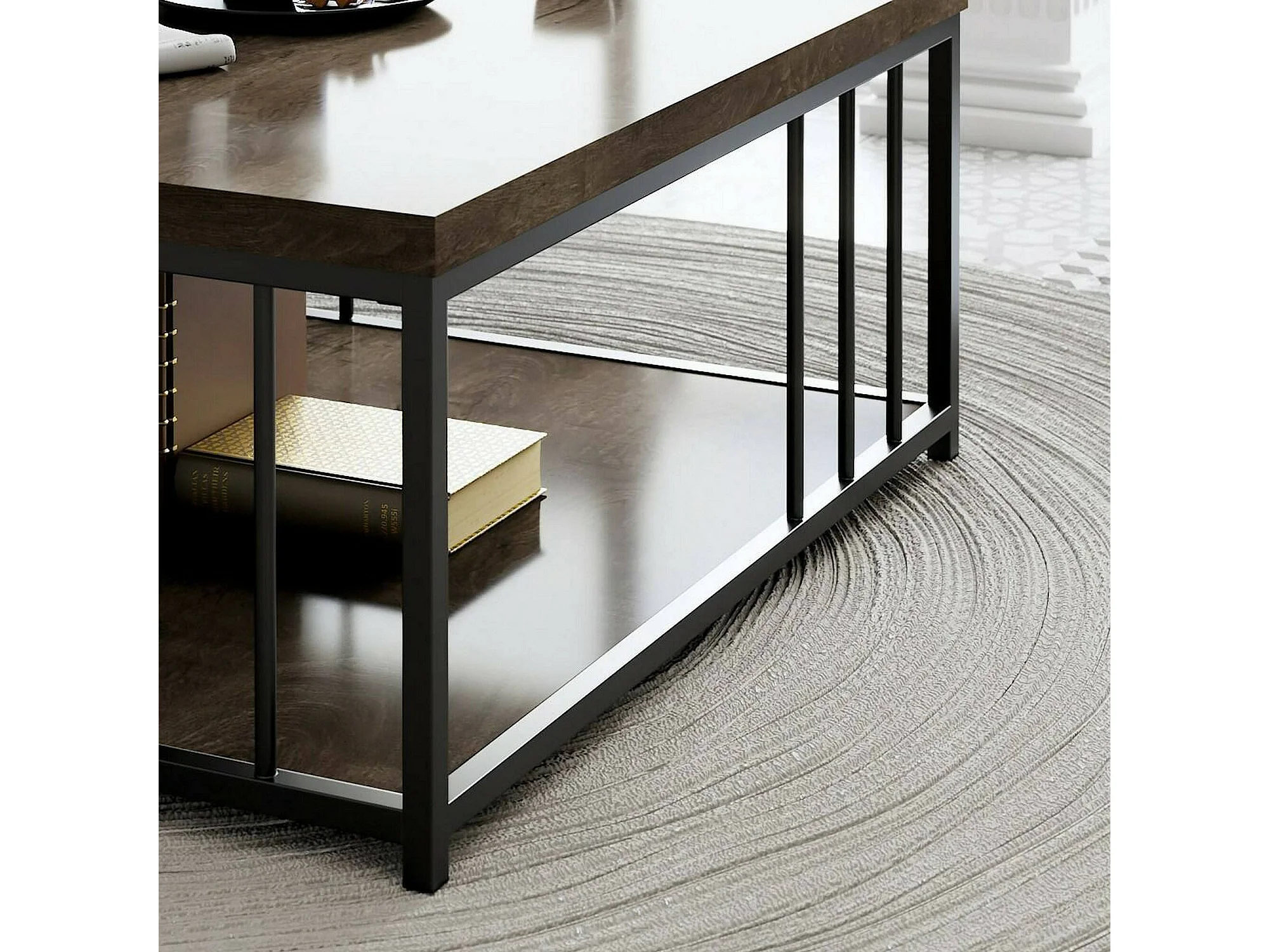 Table basse Ankaa, Table basse, Porte-revues pour canapé, Etagère de salon, 90x90h40 cm, Noyer et Noir
