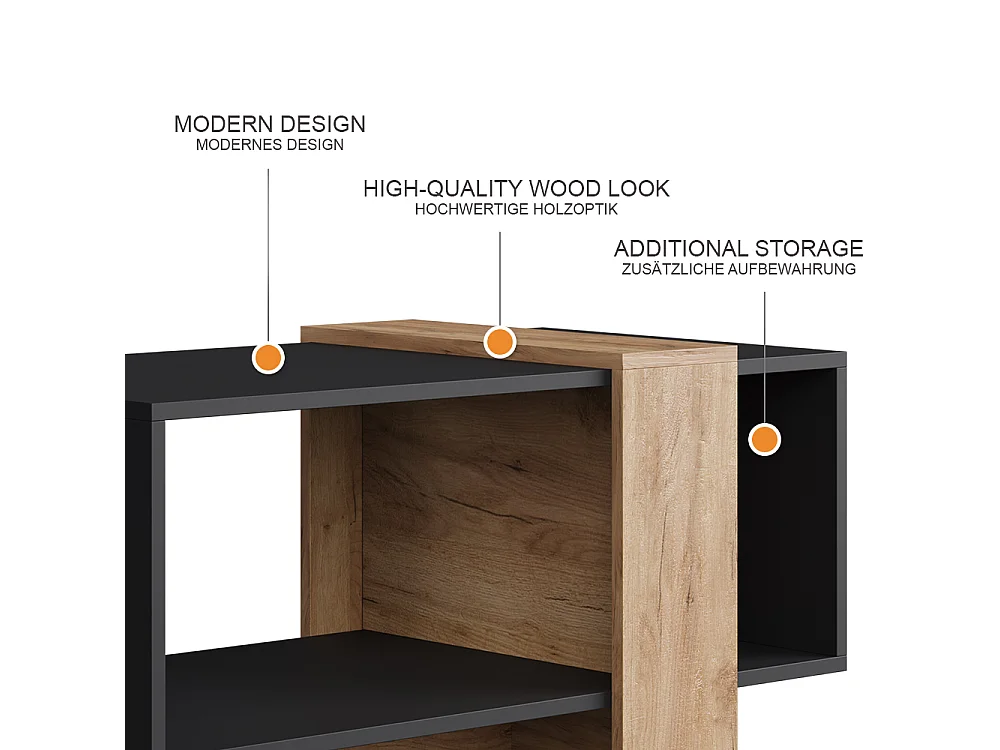 table basse anthracite/chêne doré 91.8x49x45 aven
