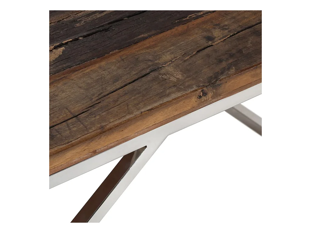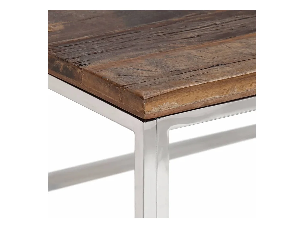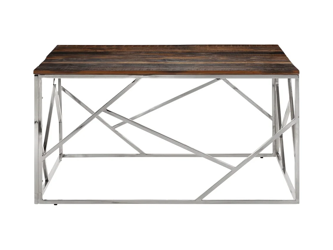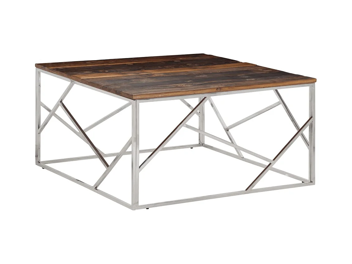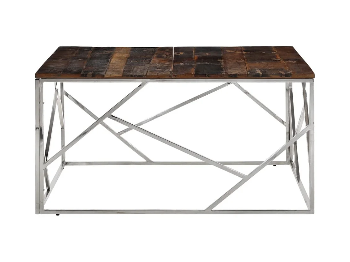 Table basse argenté acier inoxydable et bois de mélèze massif