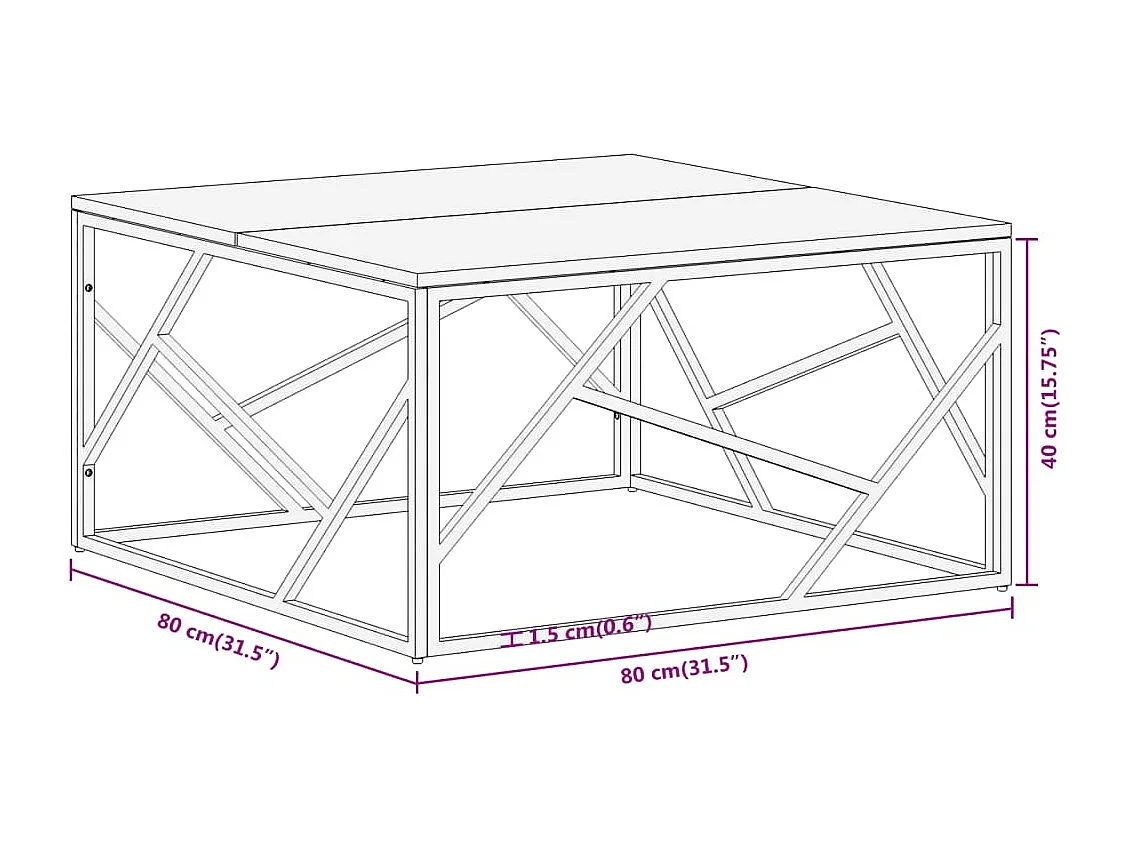 Table basse argenté acier inoxydable et bois massif d'acacia