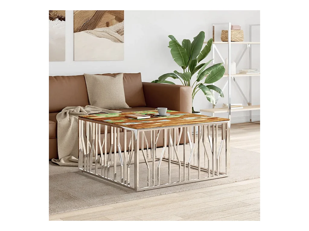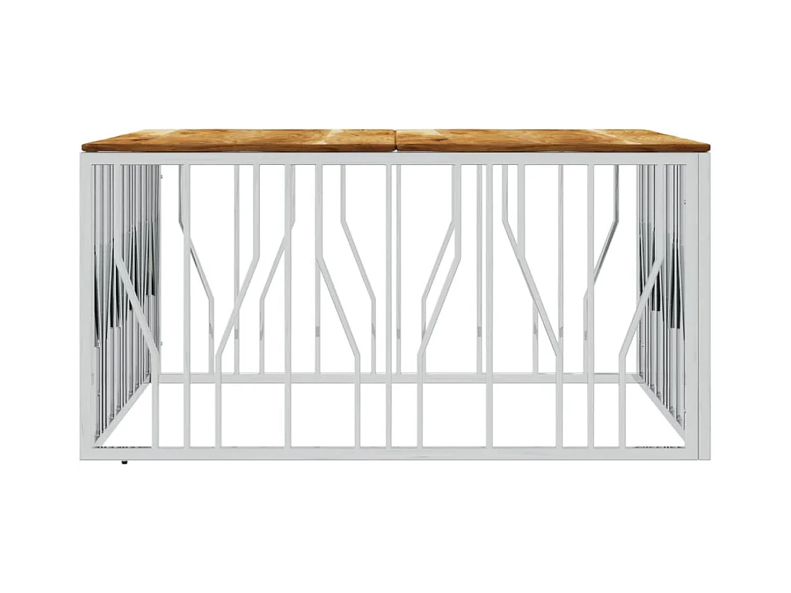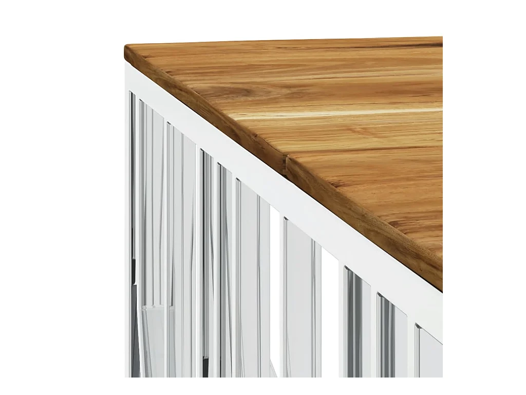 Table basse argenté acier inoxydable et bois massif d'acacia