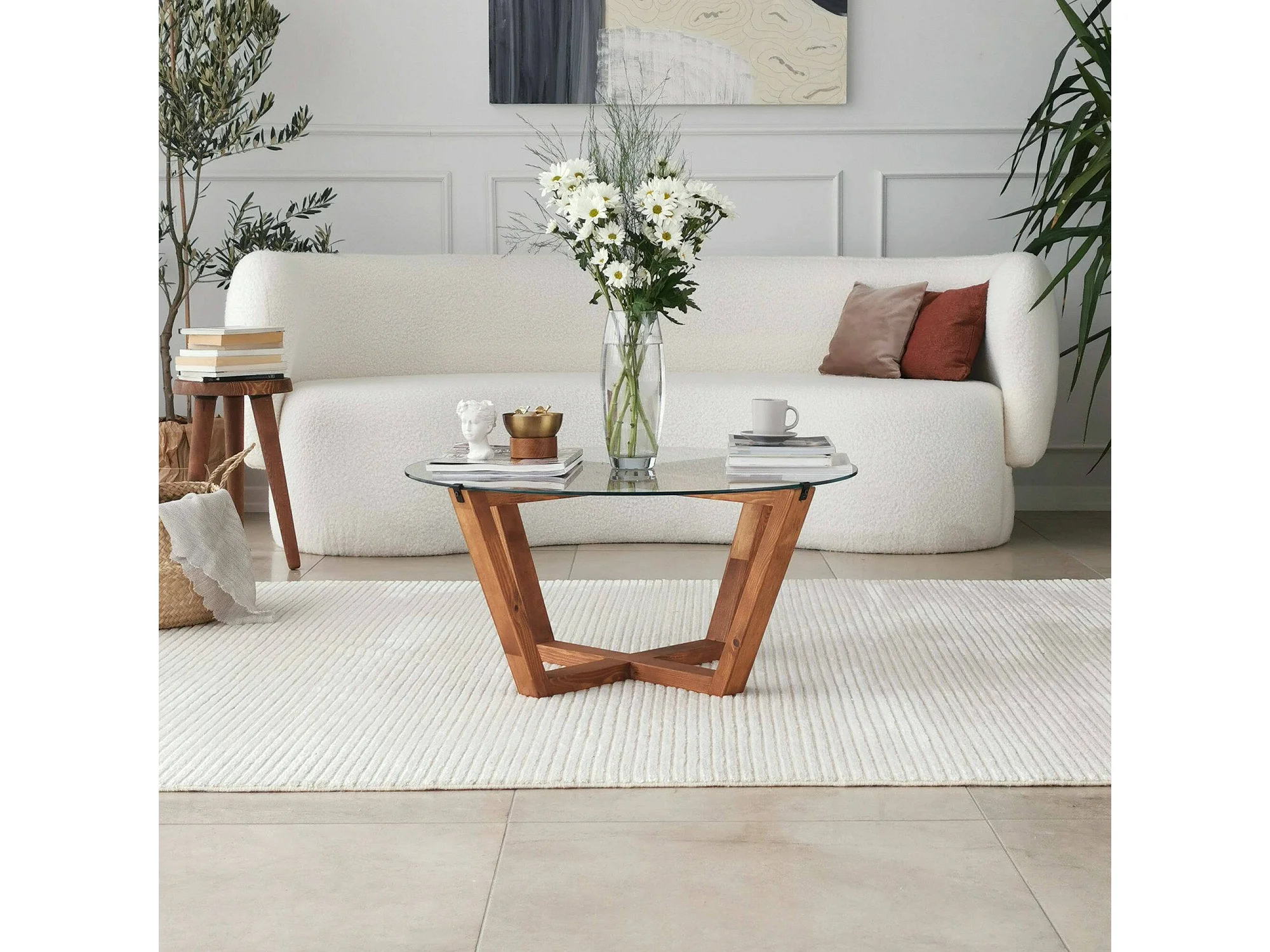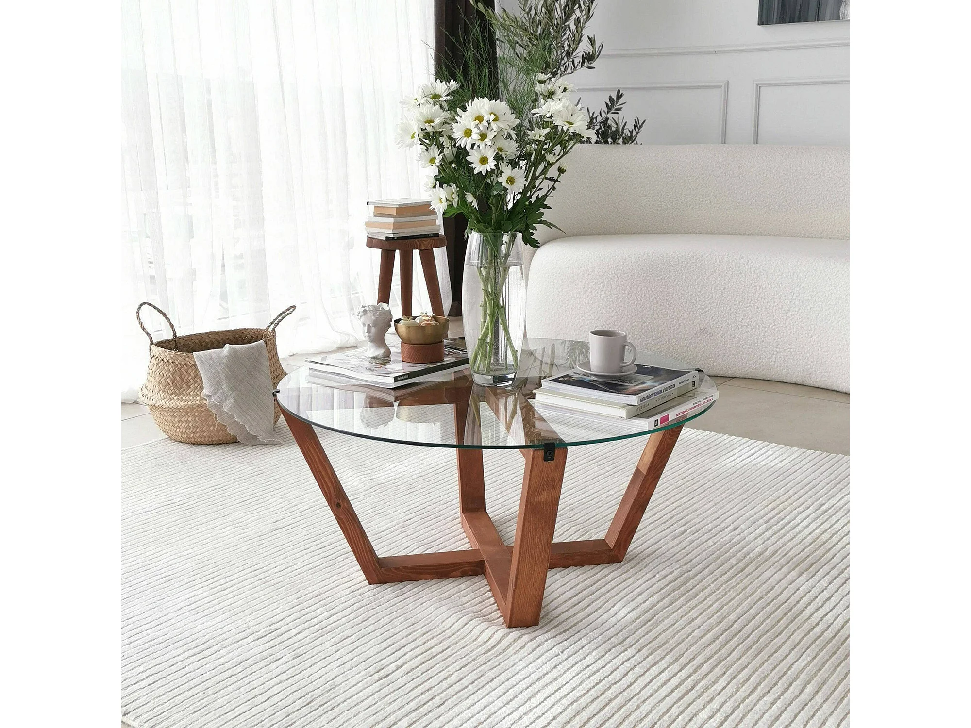 Agatha - Table basse, 75x75x35h cm Noyer marron, Porte-revues