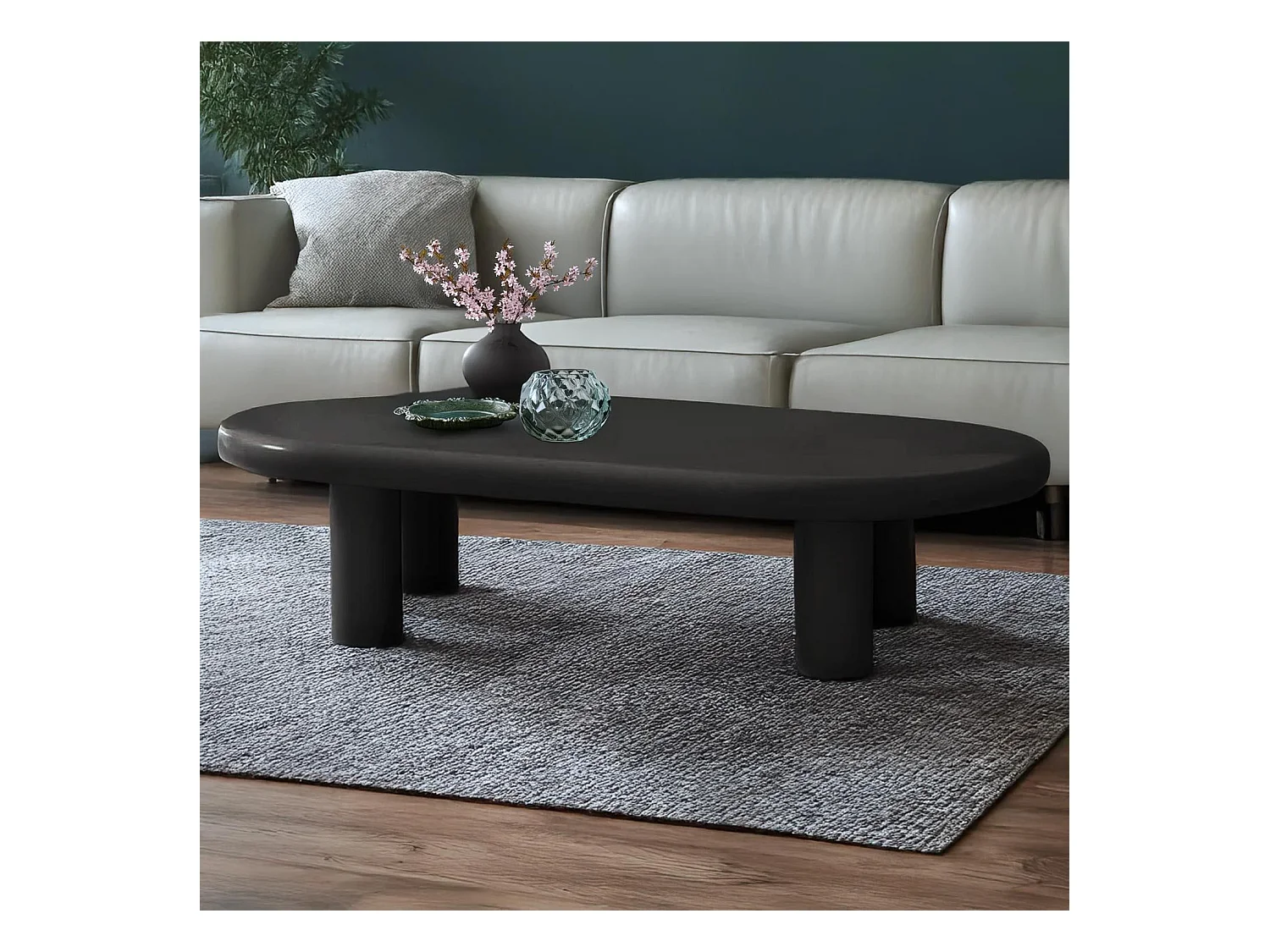 Table basse arrondie 160cm avec pieds colonnes Roady Noir