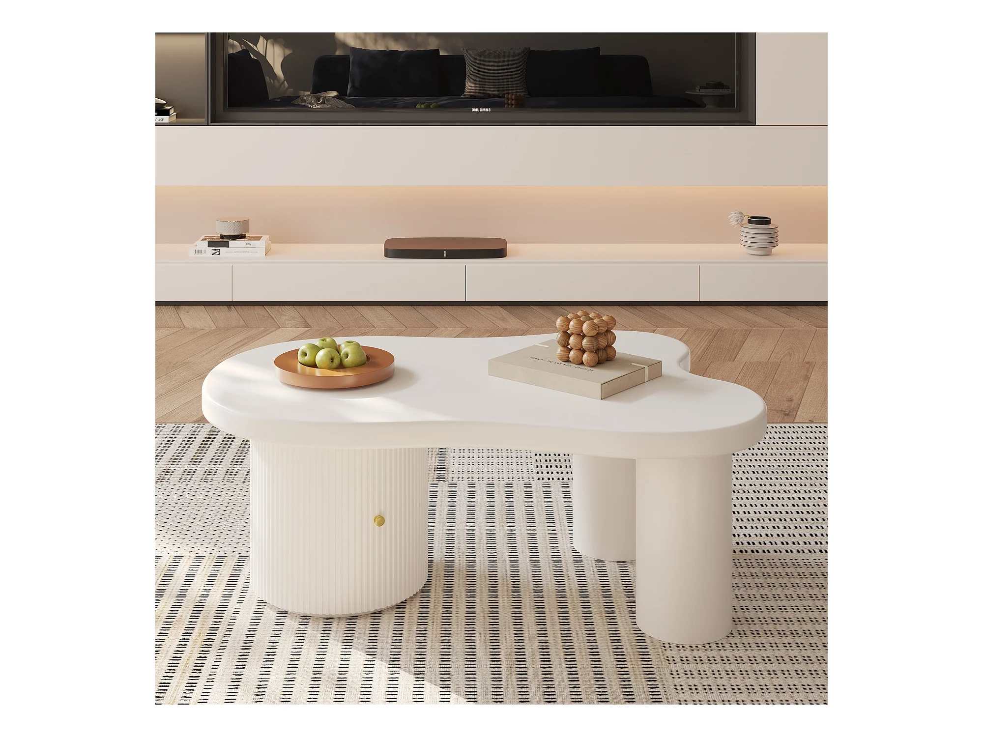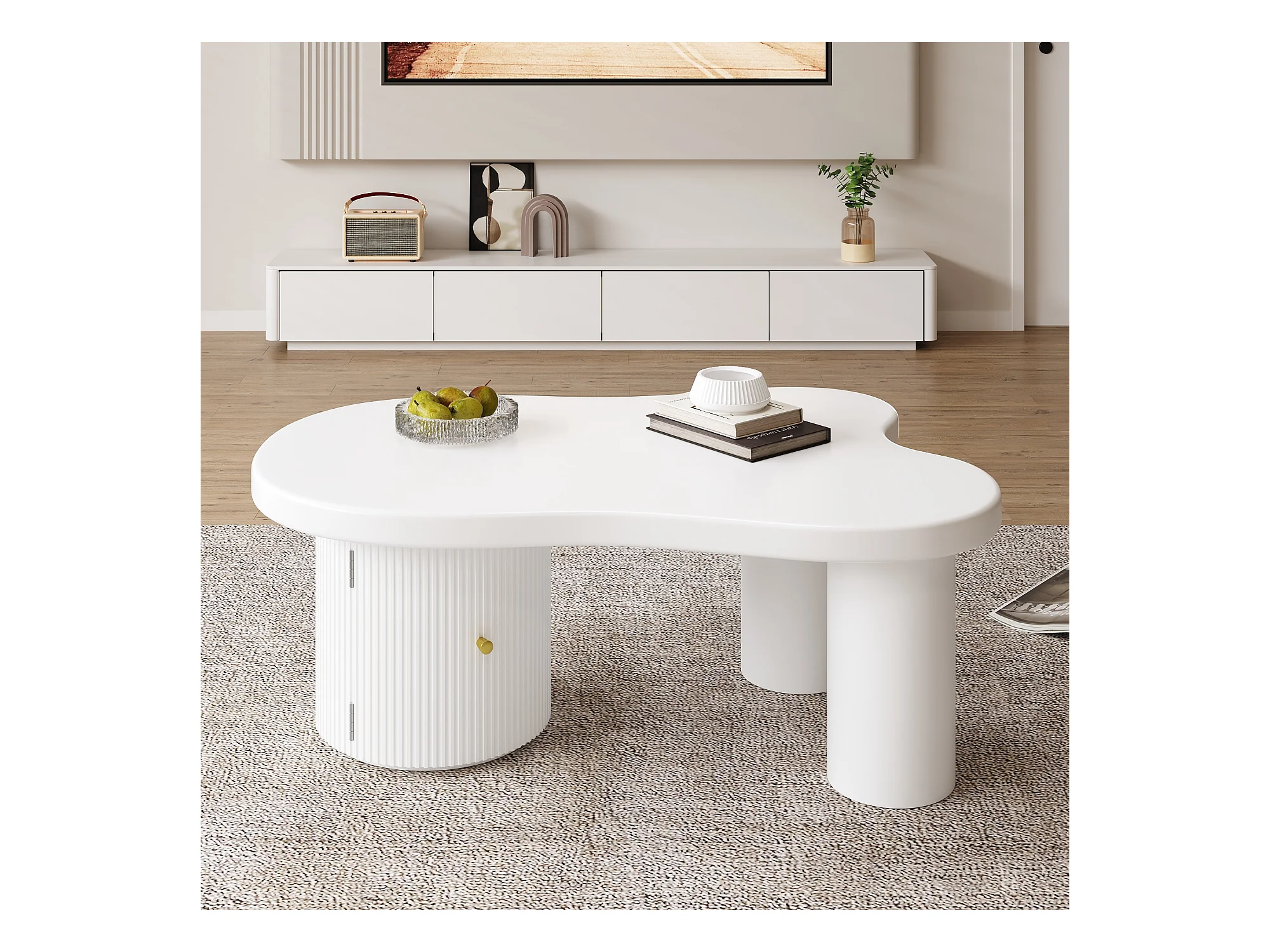 Table basse asymétrique avec espace de rangement – Élégante et robuste, idéale pour salon et bureau
