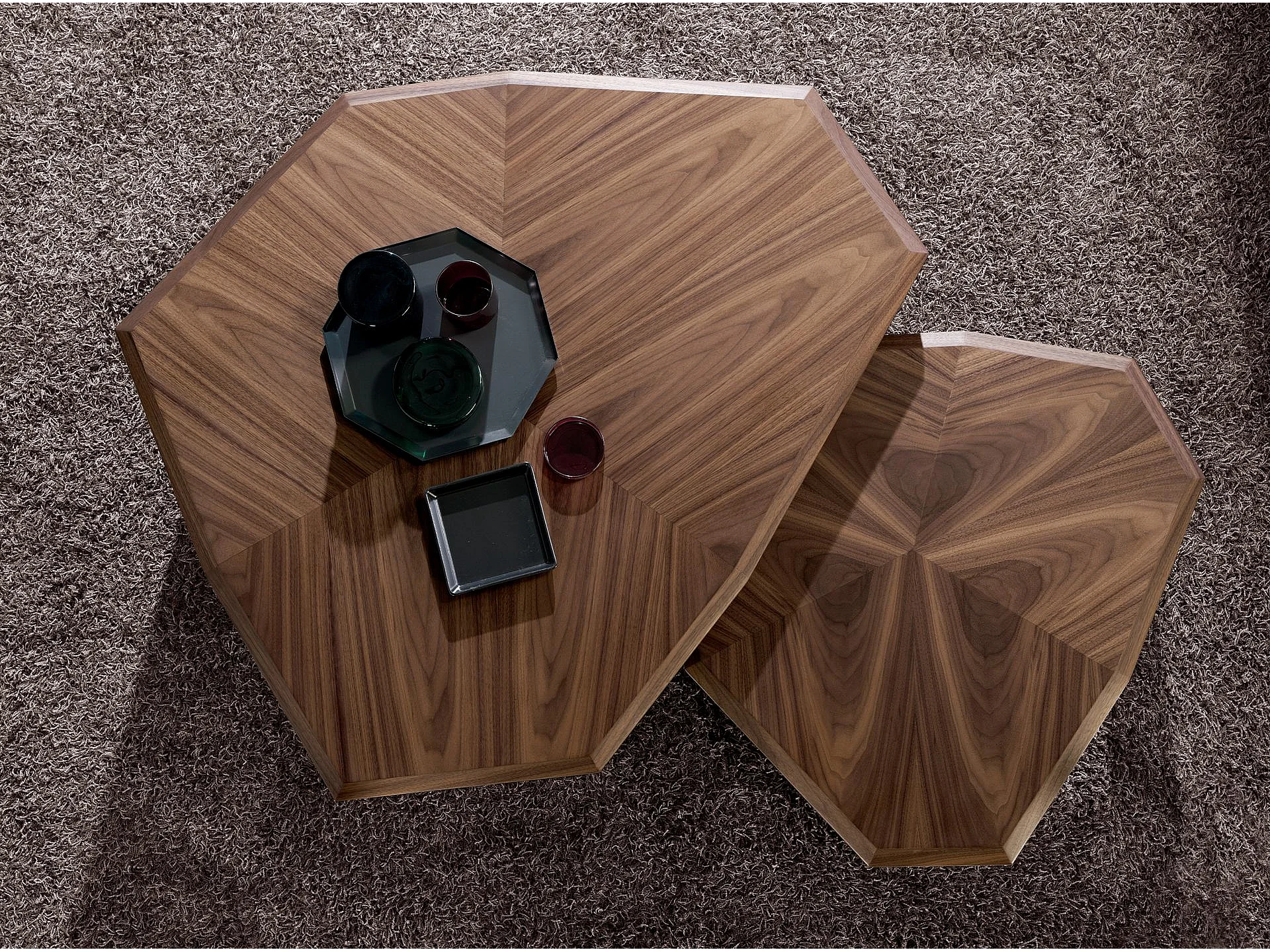 Table basse asymétrique en noyer et pvc noir 2136 ANGEL CERDA