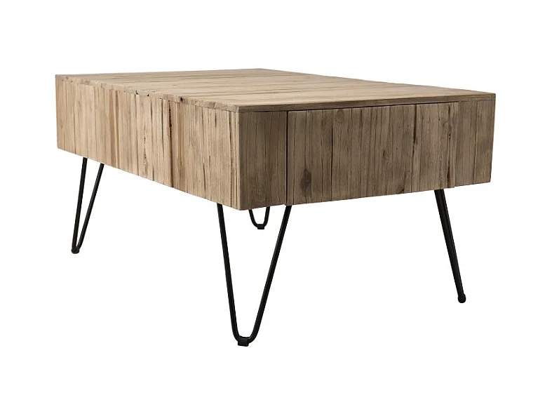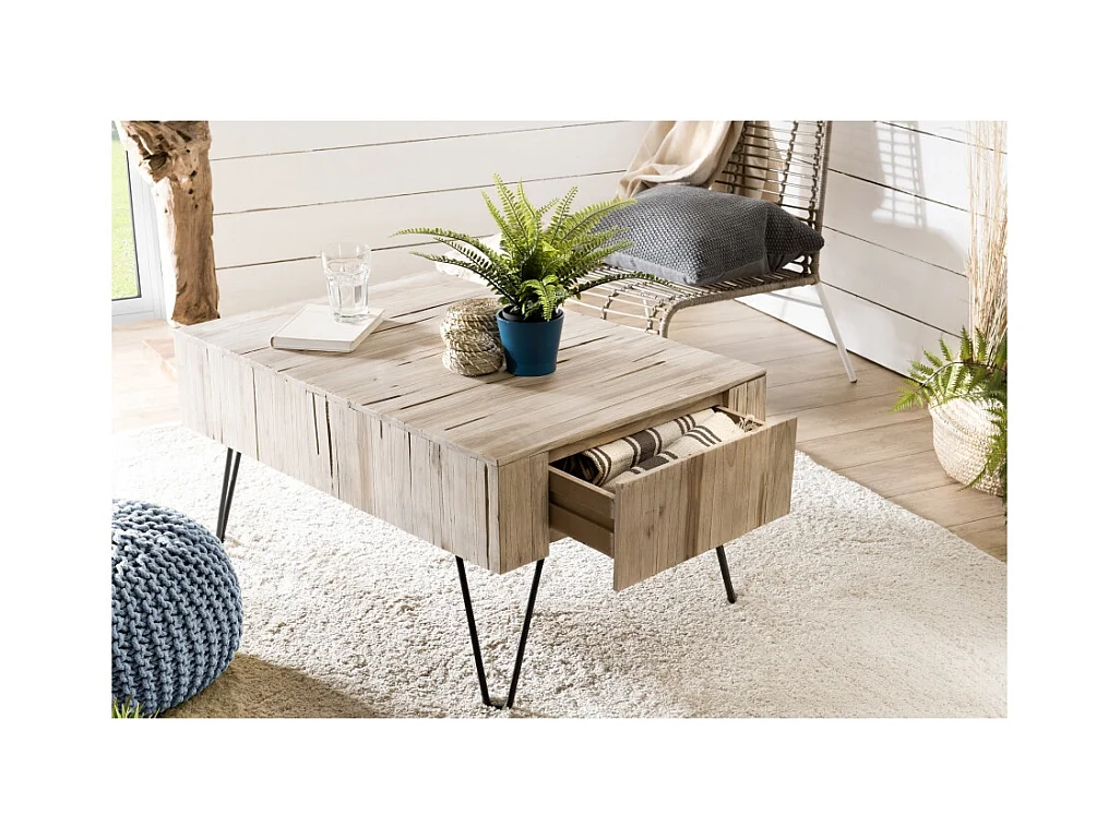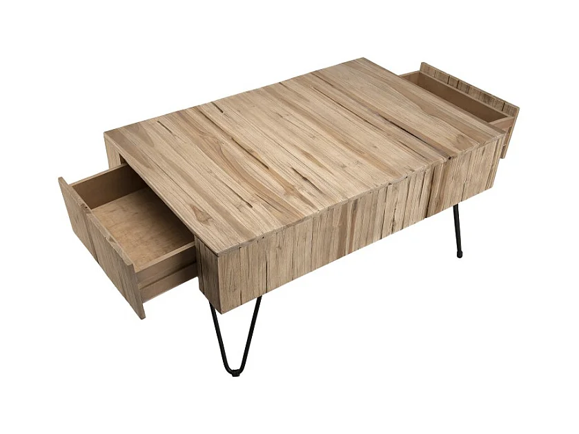 CLARA - Table basse rectangulaire 2 tiroirs branches bois Teck