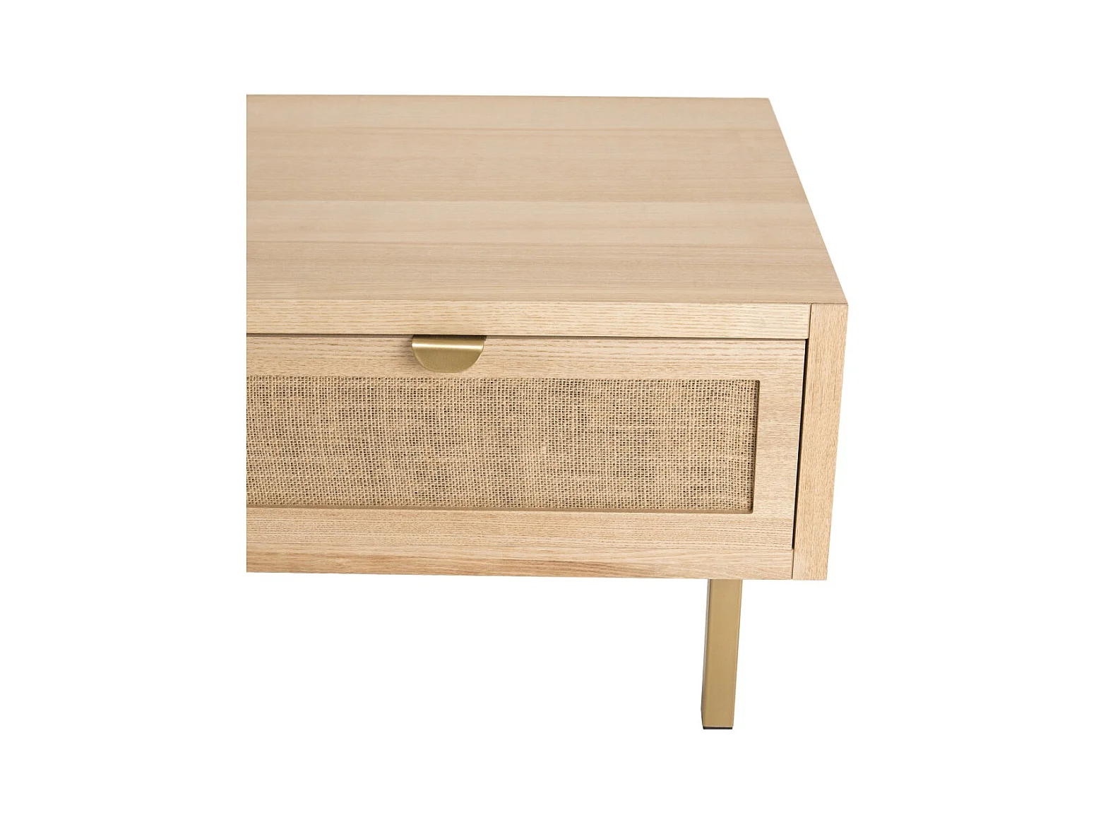 ALINE - Table basse bois 2 tiroirs toile de jute pieds métal doré