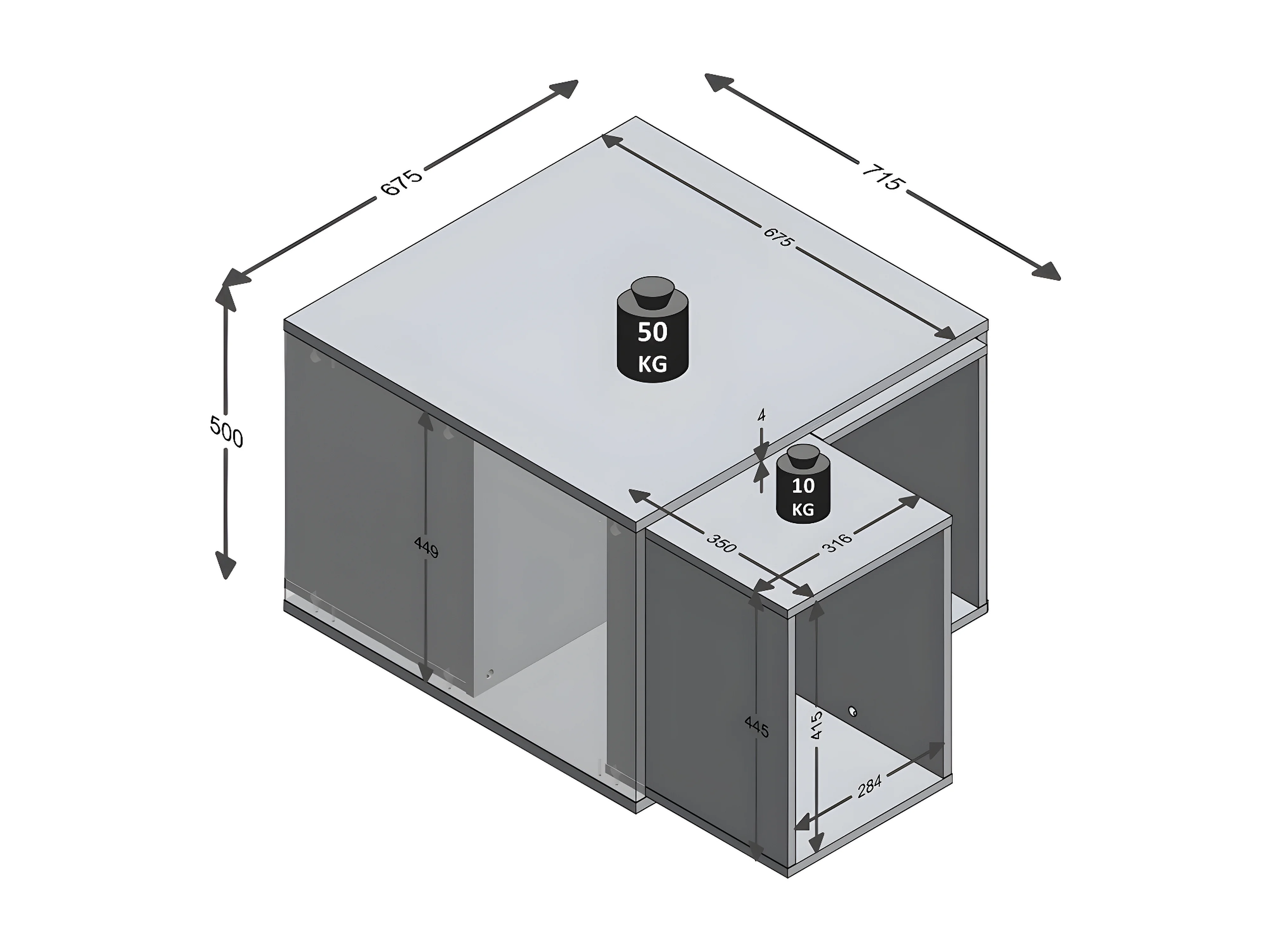 Table basse avec 4 compartiments amovibles Joker 1 - L71,5 x H50 cm